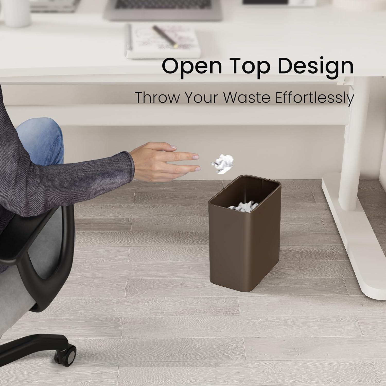 • No Lid Design: The open top with big horizontal diameter allows you to throw your waste effortlessly without touching the brown small garbage can. Even if you throw waste from a distance, it can go into the garbage can unobstructed
