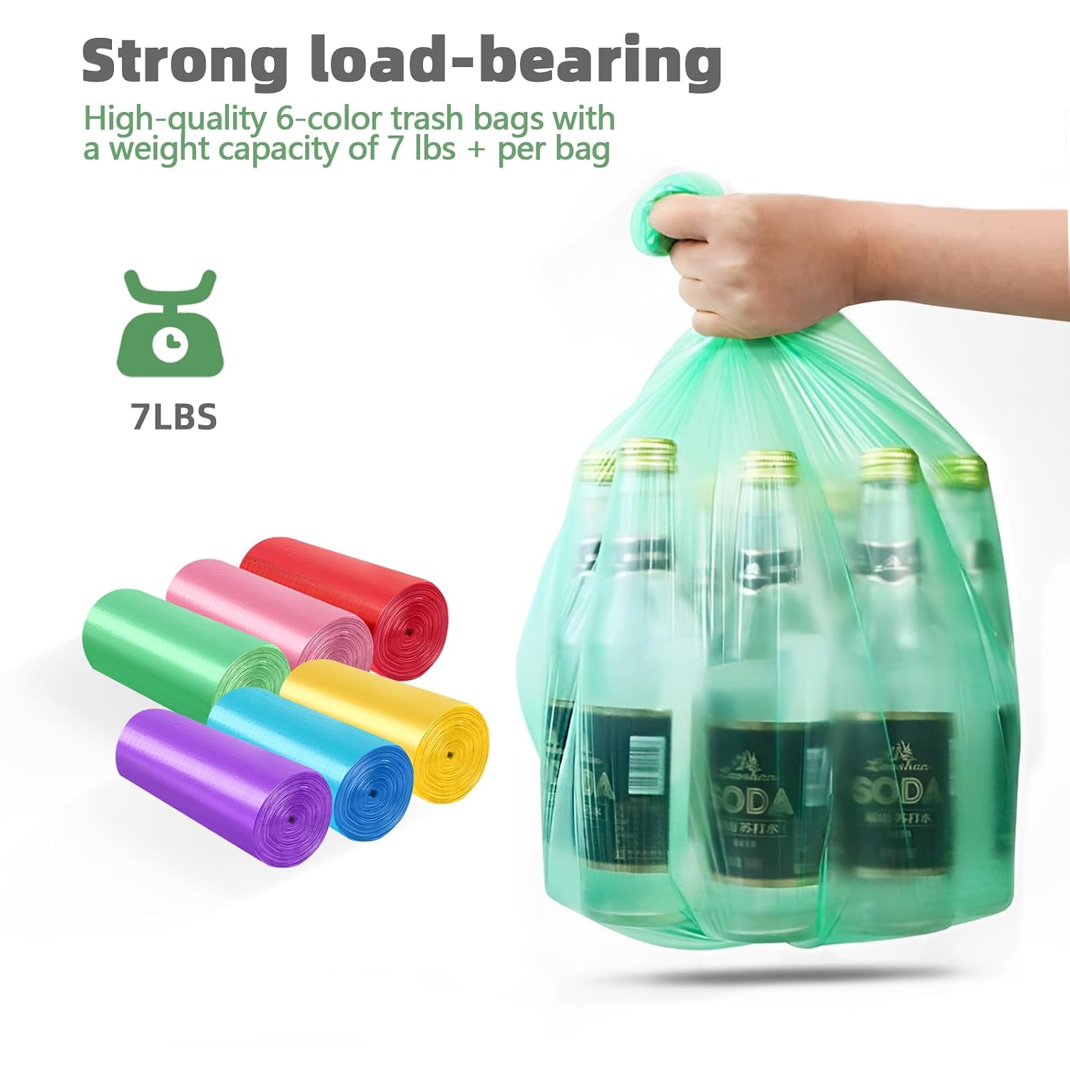 • 🛍️【Bonus 6 Extra-Thick Garbage Bags】Each set includes 6 premium garbage bags in assorted colors—tear-resistant and leakproof, with a 7+ lb load capacity. No more flimsy bags! Ideal for disposing of tissues, wipes, or light household waste without worry.