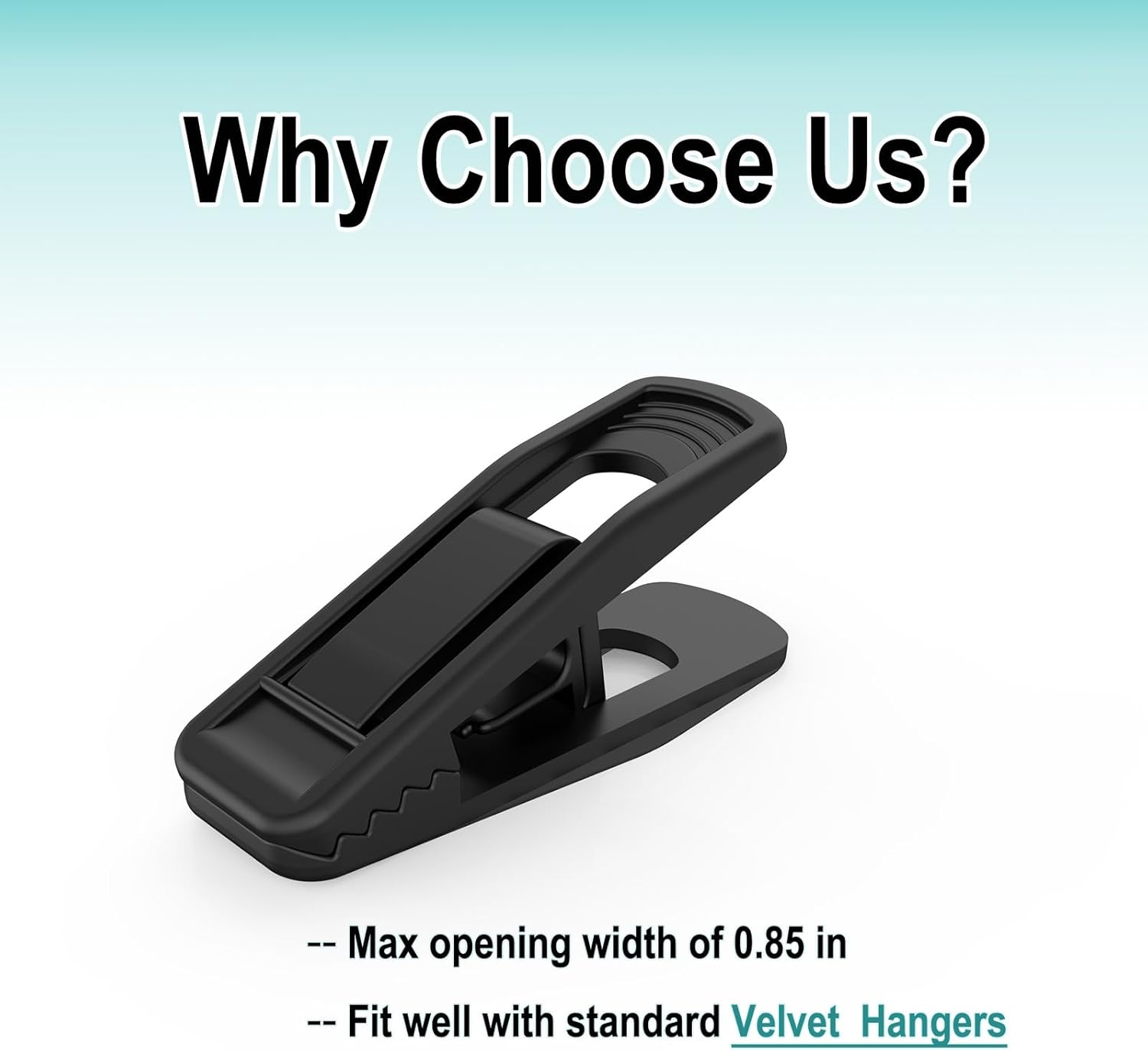• ✅ Space-Saving Hangers Clips – You can add these black hanger clips on black velvet hangers to maximize storage, and instantly transform chaos into order!
