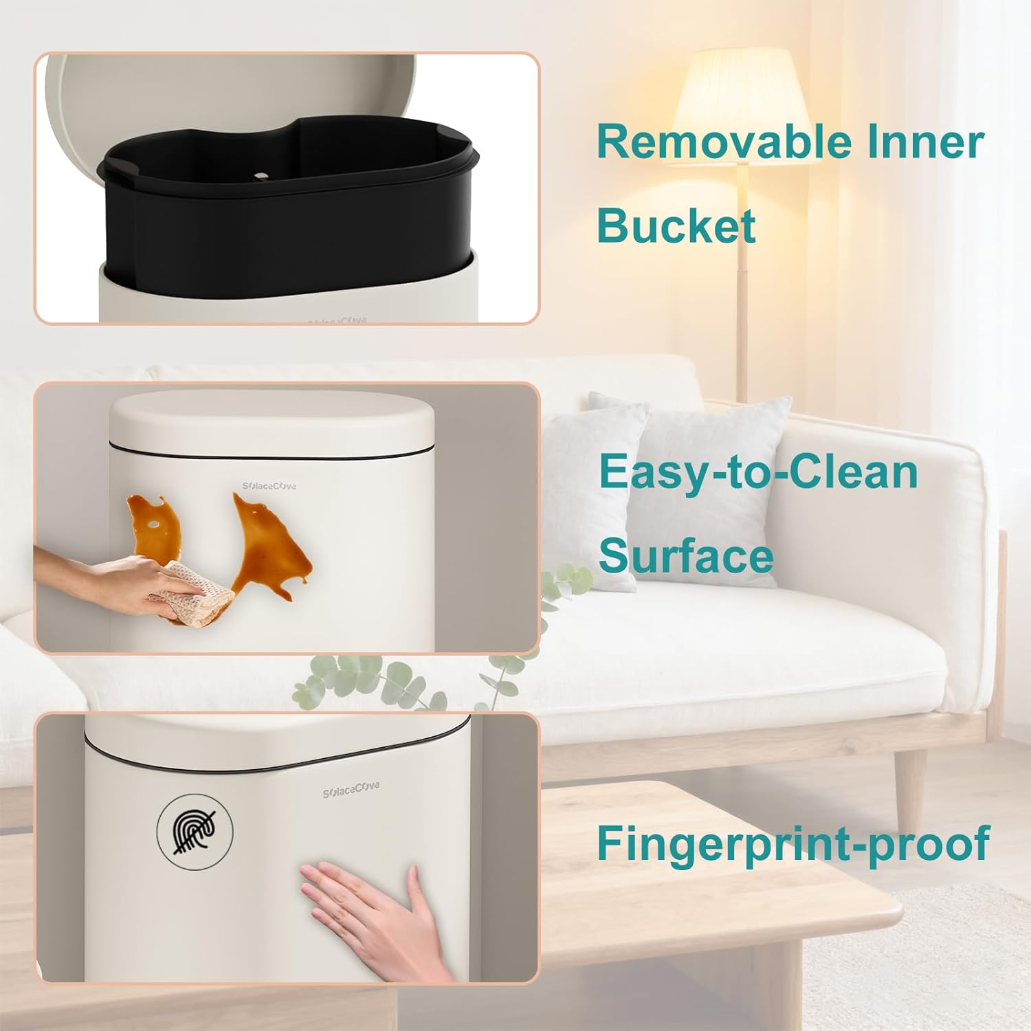 • 【Detachable Inner Liner】Equipped with a durable plastic inner bucket for effortless trash removal and leak-proof bag retention—an essential feature for a reliable small trash can.