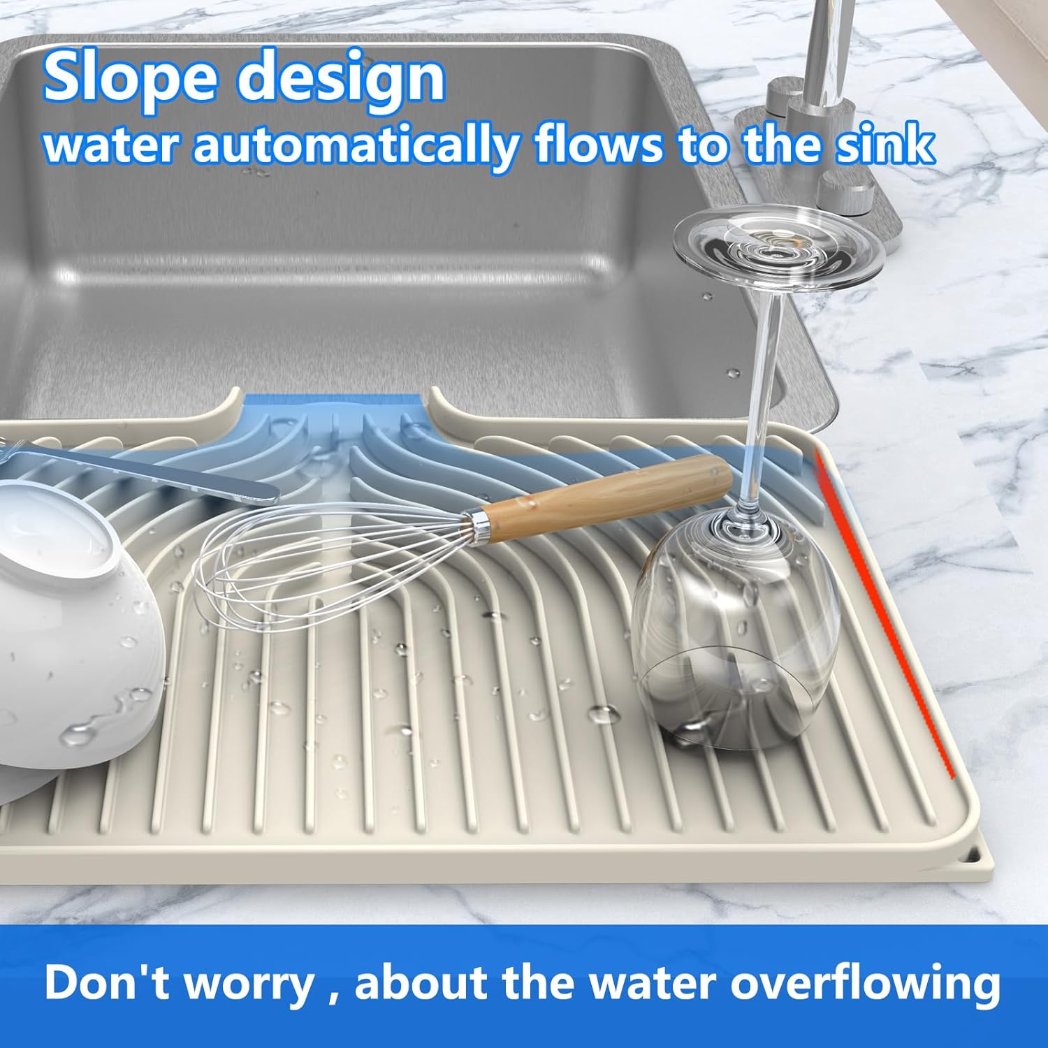Dish Drying Matt for Kitchen Counter,18"×12"Silicone Dry Rack Mat with Built in Drain, Kitchen Dry Mats for Dishes Drying Pad for Counter(18"×12"Cream)