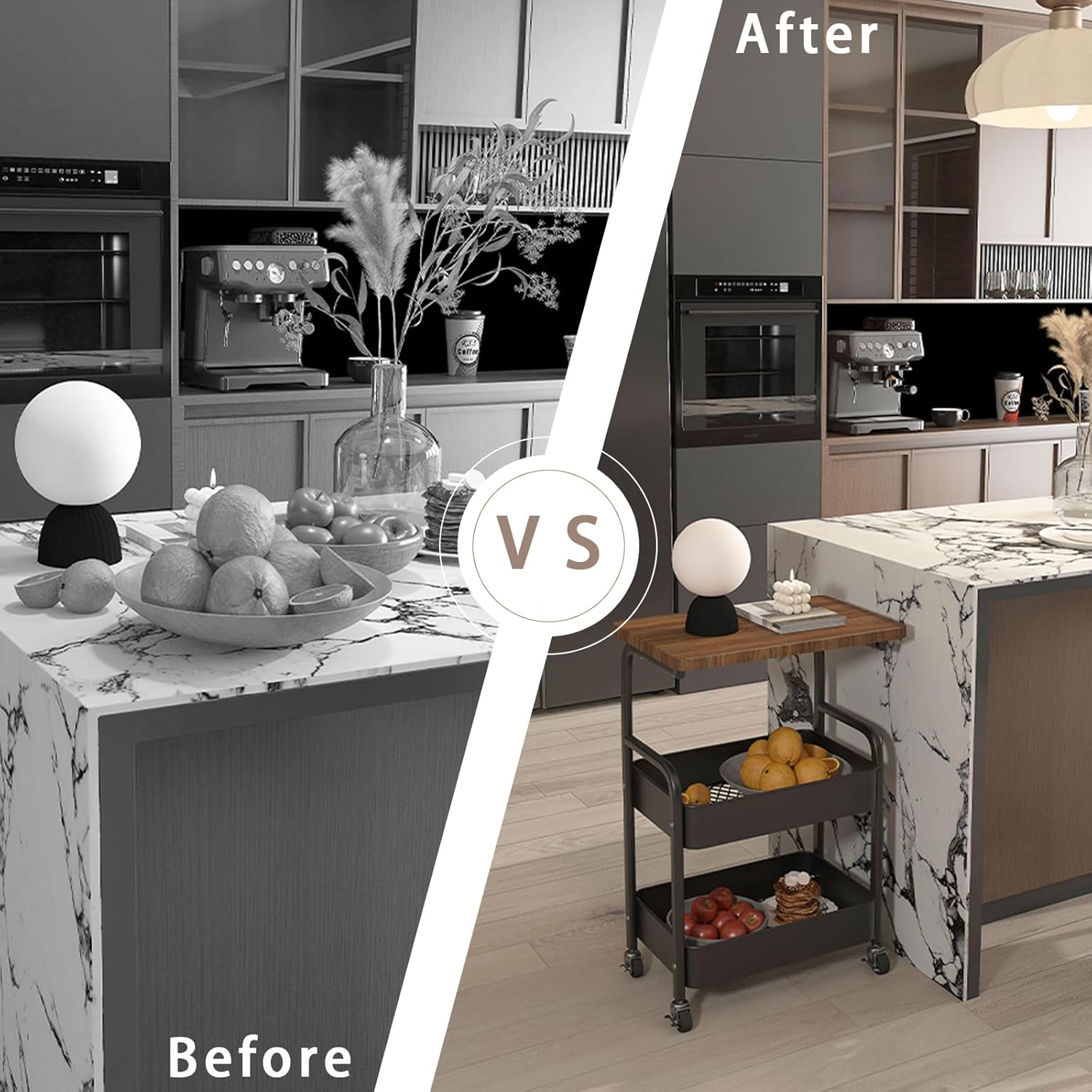 • Multifunctional Storage Cart: Our 3 tier utility rolling cart not only can be used as a kitchen storage rack, but also as a snack side table or mobile printer stand.