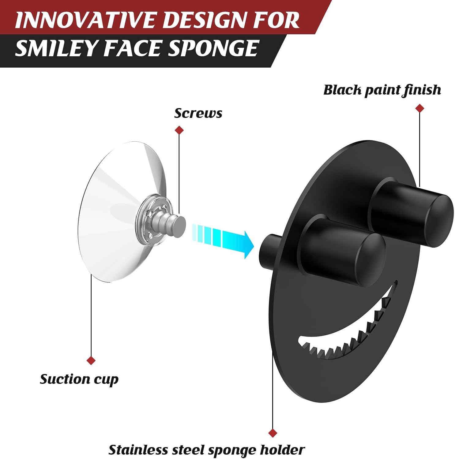 Sponge Holder for Kitchen Sink,Sink Caddy Organizer with Suction Cup Installation for Kitchen/Bathroom, Self Draining,Sponge Caddy for Holding Smiley Sponges-Black