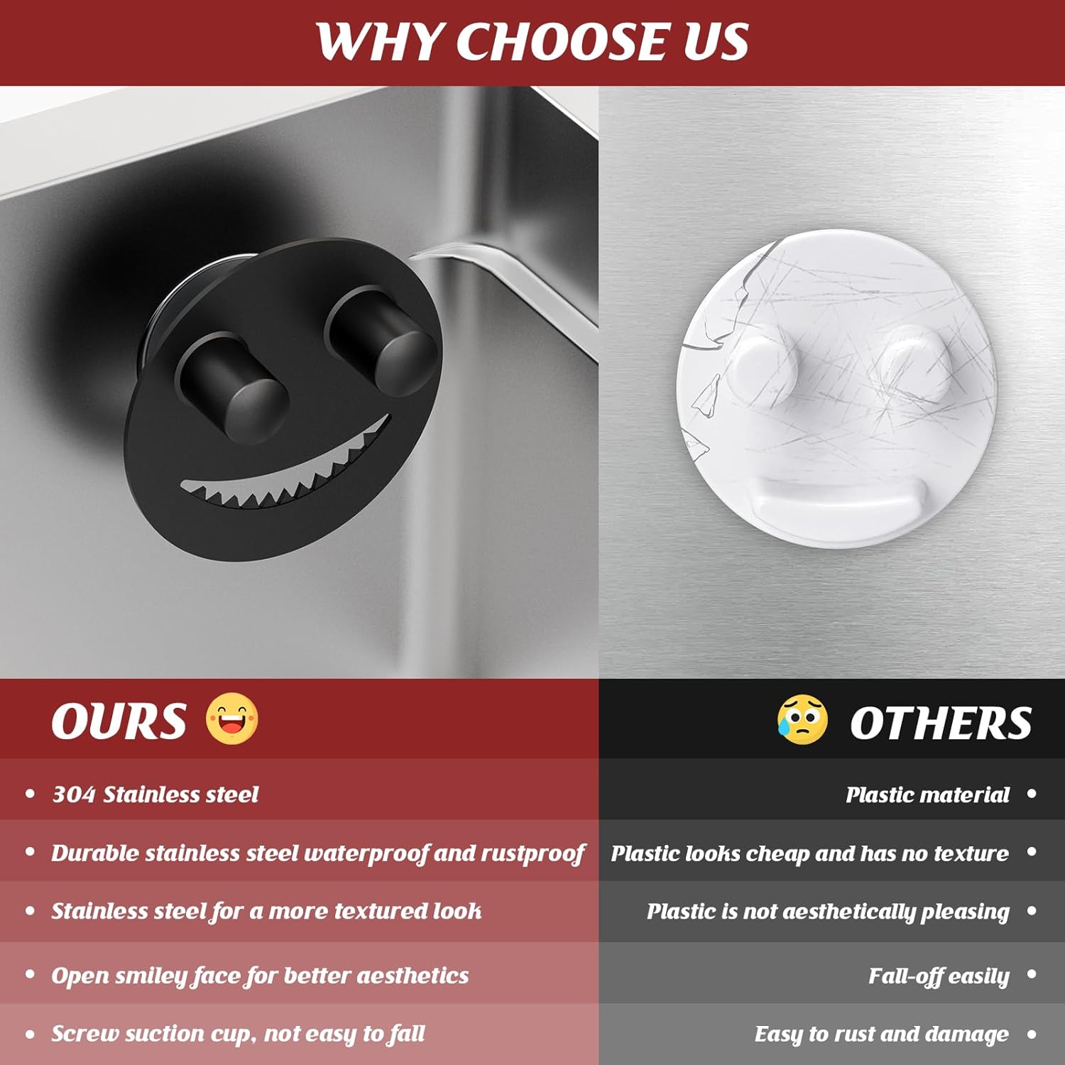 • VENTILATED AND EASY TO DRY: This sink caddy installation with a certain distance from the wall or sink space can greatly increase air convection.The sink sponge holder with suction cups allows your smiley kitchen sponge to drain and air dry quickly, reducing odors and keeping the sponge the same as before