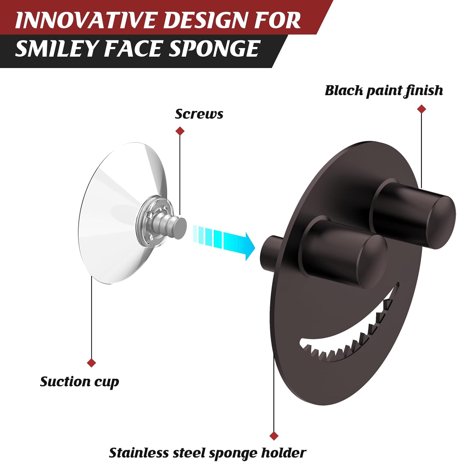 • EASY INSTALLATION:The suction cup sink caddy don't need tools or drilling, the screws and suction cups are integrated. Lease clean the sink and keep it dry before installation. Then, simply rinse the suction cups and press the sponge holder to the surface of the sink and squeezing out the air to hold it firmly in place. Just put your smiley sponge on the sponge holder
