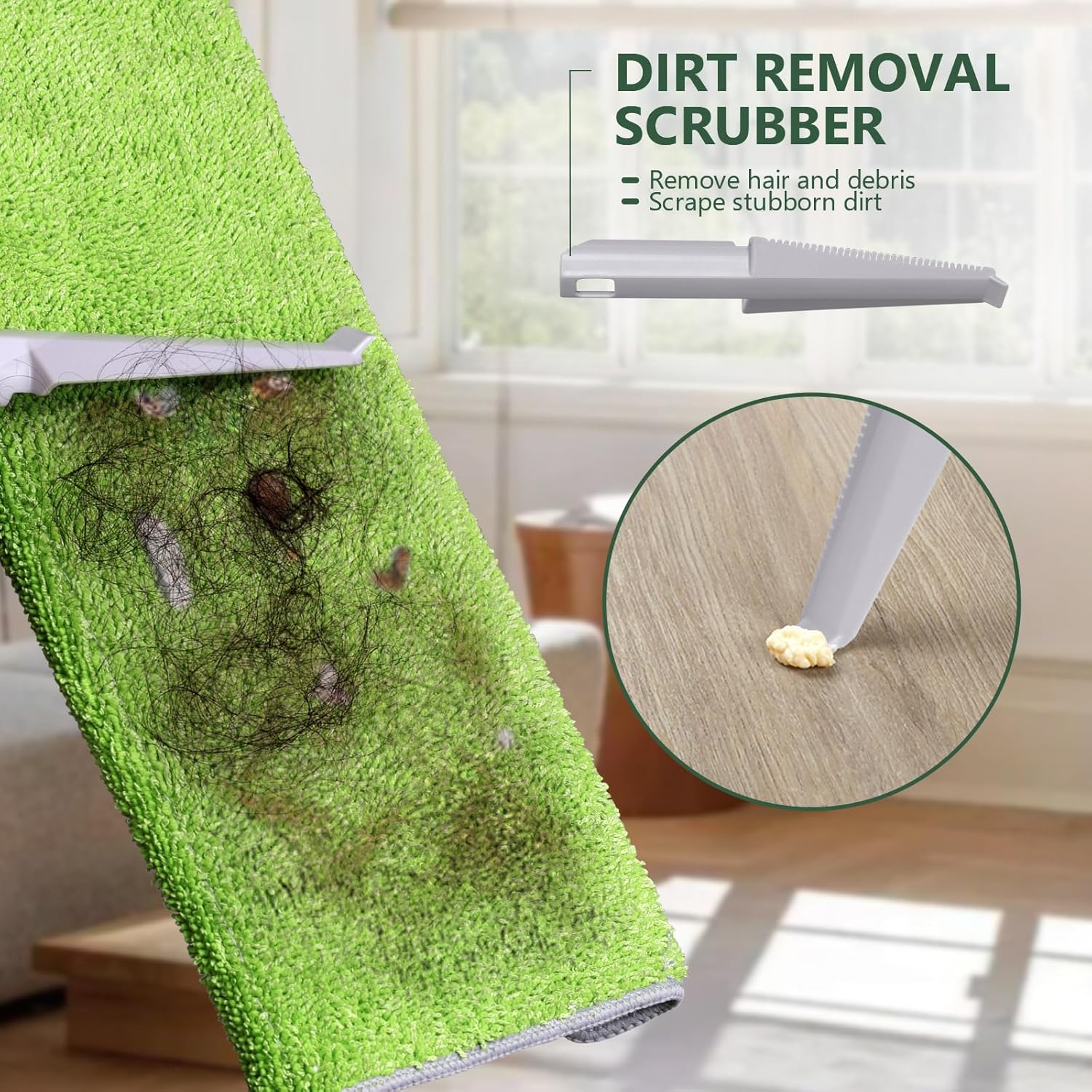 • 4 Double-sided Mop Pads: The flat floor mop comes with 4 double-sided mop pads. One side is made of microfiber and can be used for dry mopping, taking away stubborn stains. The other side is made of soft coral fleece and can be used for wet mopping for meticulous cleaning. Machine washable and reusable, saving you money. You can also use your preferred thick towel as a replacement mop pad.