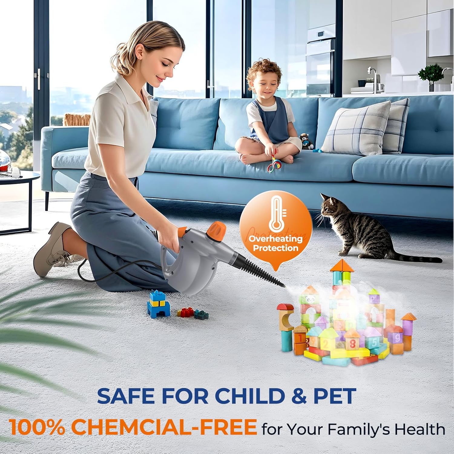 • CHEMICAL-FREE & CHILD/PET SAFE: Add water to harness steam for sanitizing surfaces without harsh chemicals; Worry-free cleaning around kids, pets, and on delicate fabrics, giving you extra peace of mind while cleaning