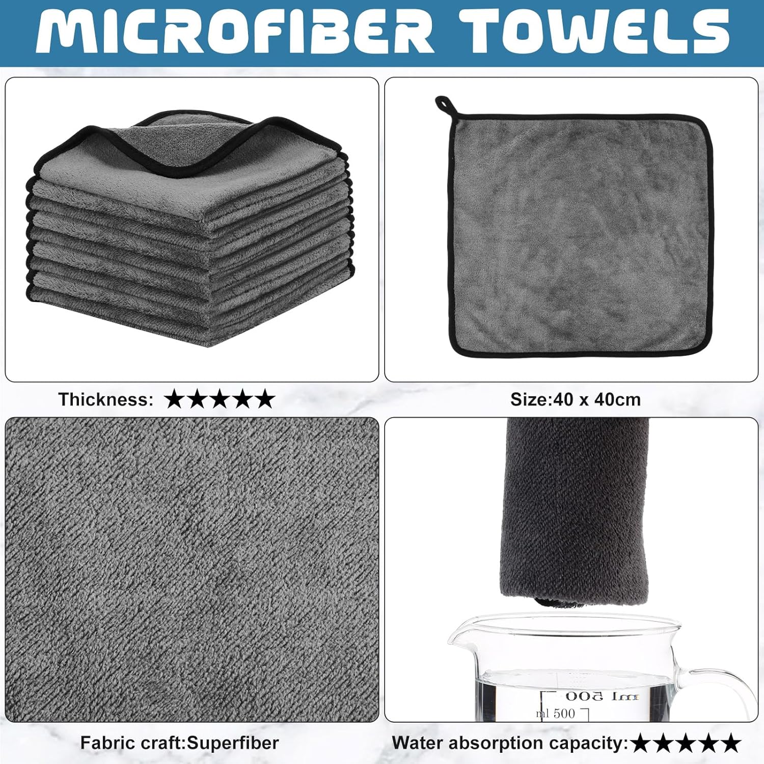 • Ideal Cleaning Tool: the size of the microfiber towel cloth measures 16 x 16 inches/ 40 x 40 cm, the right size makes it easier for you to hold while doing housework or car wash, soft, fluffy and hard to deform, the gray microfiber towels can spotlight the dirt, you can clearly see the dirt at a glance and remove