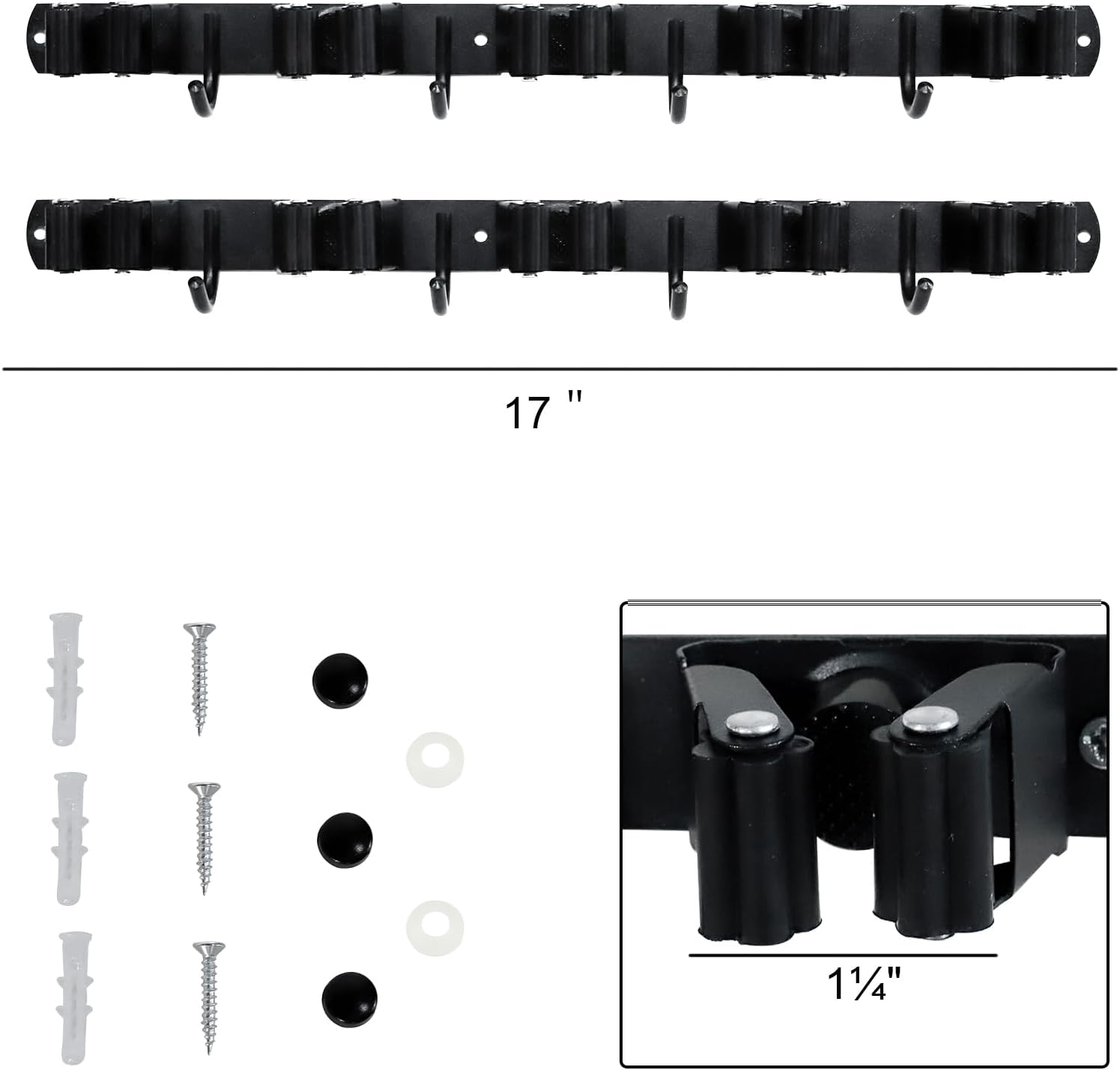 • Universal Handle - Suitable for wet and dry mops, brooms, rakes, and gardening tools (up to 1.4 inches thick). The flexible silicone rollers are adjustable to prevent slipping, keeping tools organized and meeting various storage needs.