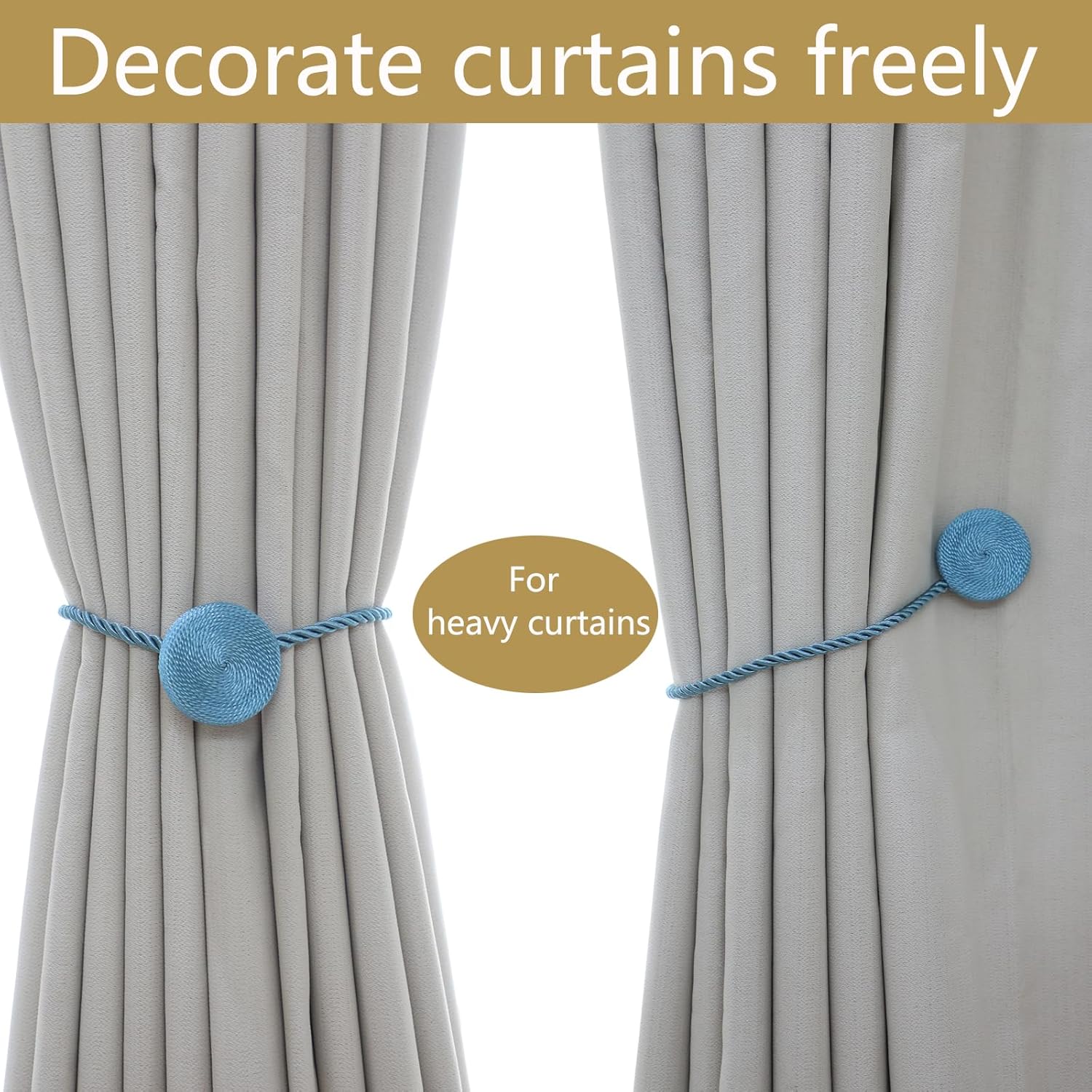 • 🎯 Versatile Styling Anywhere: Versatile for Any Room & Curtain: These magnetic curtain tiebacks perfect for thick blackout drapes or sheer curtains, used fully tied or half-tied. Perfect for living rooms, bedrooms, offices & bathrooms. European braided design blends with farmhouse, modern, or classic decor. Holds thickest curtains yet gentle on fabrics.