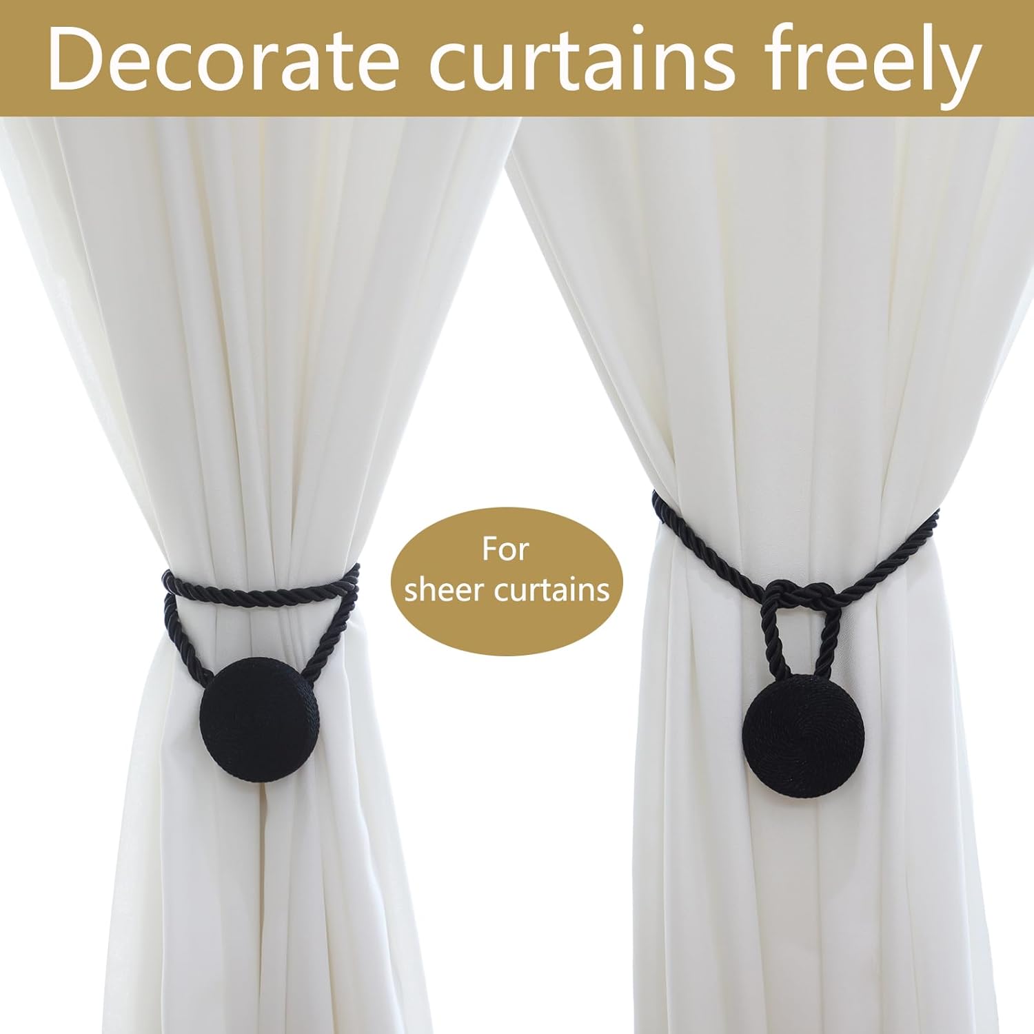 • 🎯 Versatile Styling Anywhere: Versatile for Any Room & Curtain: These magnetic curtain tiebacks perfect for thick blackout drapes or sheer curtains, used fully tied or half-tied. Perfect for living rooms, bedrooms, offices & bathrooms. European braided design blends with farmhouse, modern, or classic decor. Holds thickest curtains yet gentle on fabrics.