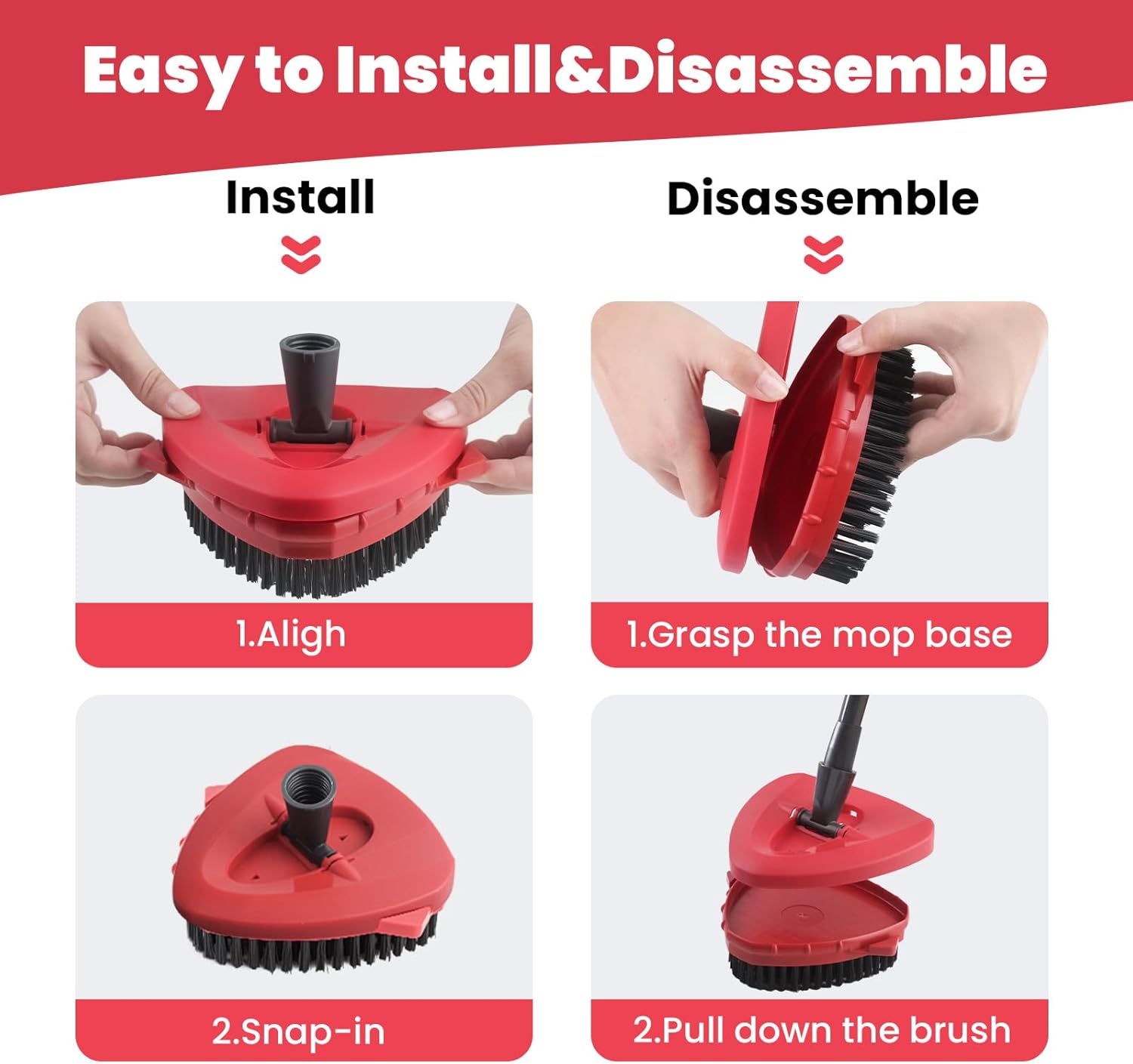 • [Various Surfaces Use]: Our scrub brush attachment is easy to install with the mop base. The shower cleaning brush head is great for almost surface, likes tile floor, concrete floor, wooden floor, marble floor, glass surface, windows and wall. Regularly replace the scrub brush head for better cleaning work