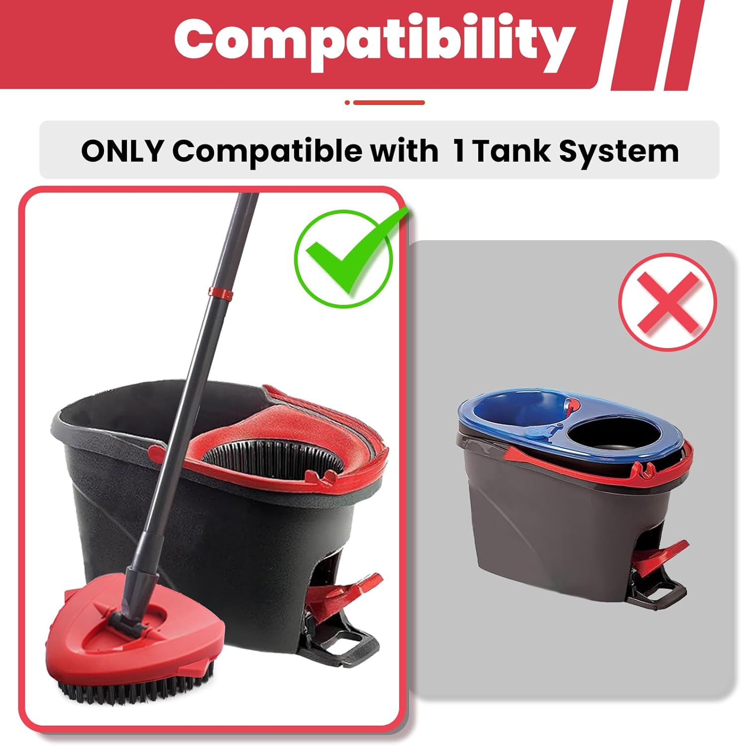 • [Applicable Model]: Package include 2 pack full bristle floor scrubber brush head. The mop replace scrub brush head attachment is ONLY compatible with O-Ceda EasyWring Microfiber Spin Mop. NOTE: The repalcement scrubbing heads only compatible ocedar 1-Tank system, NOT compatible with 2-Tanks RinseClean system