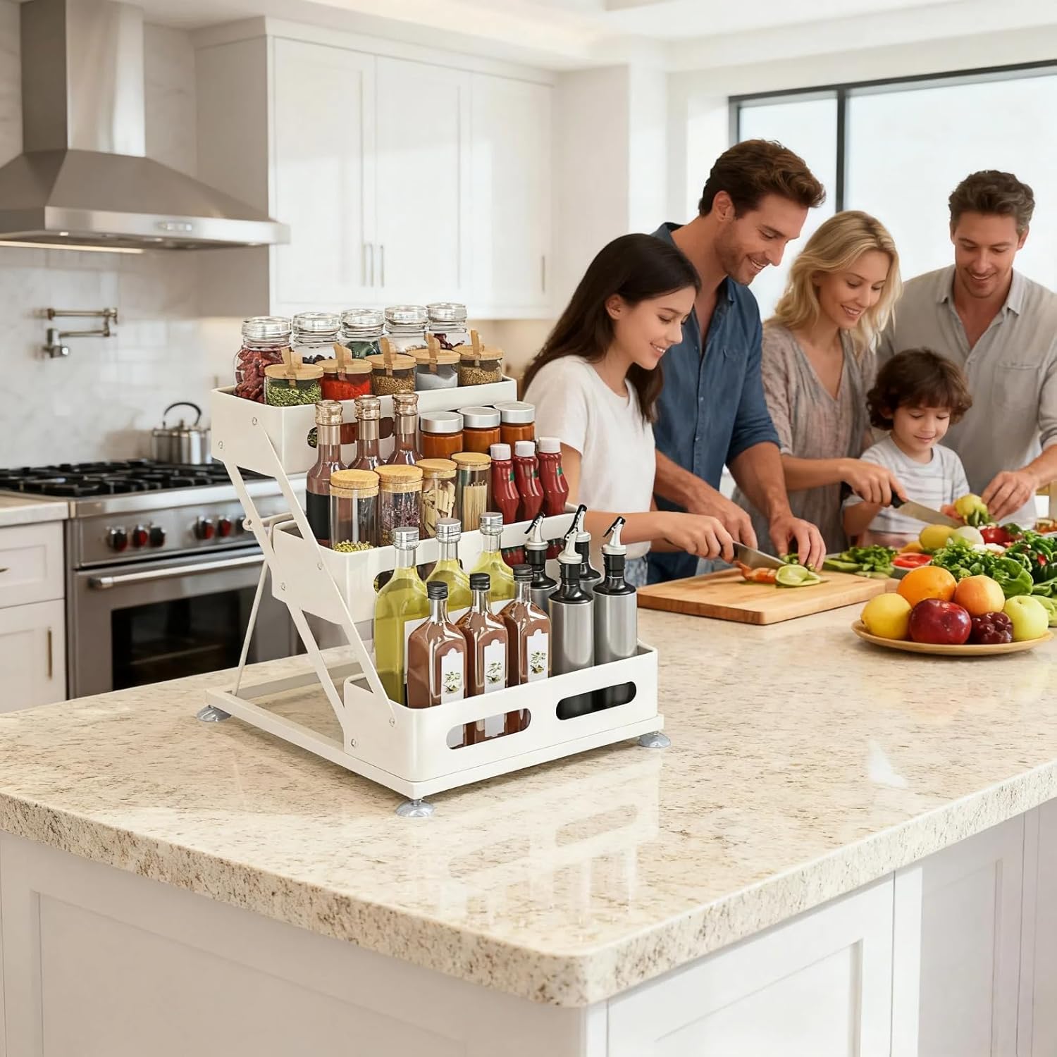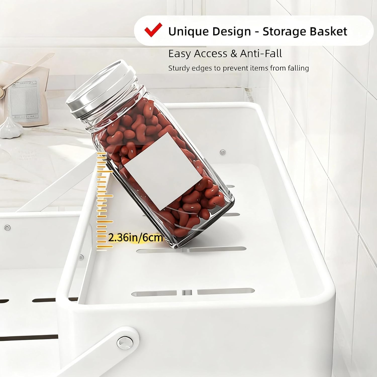 • Unique Design -- Compared to other spice racks, our spice rack for countertop features 3 flat-bottomed storage baskets. This design provides greater weight capacity while preventing items from tipping over or falling out.