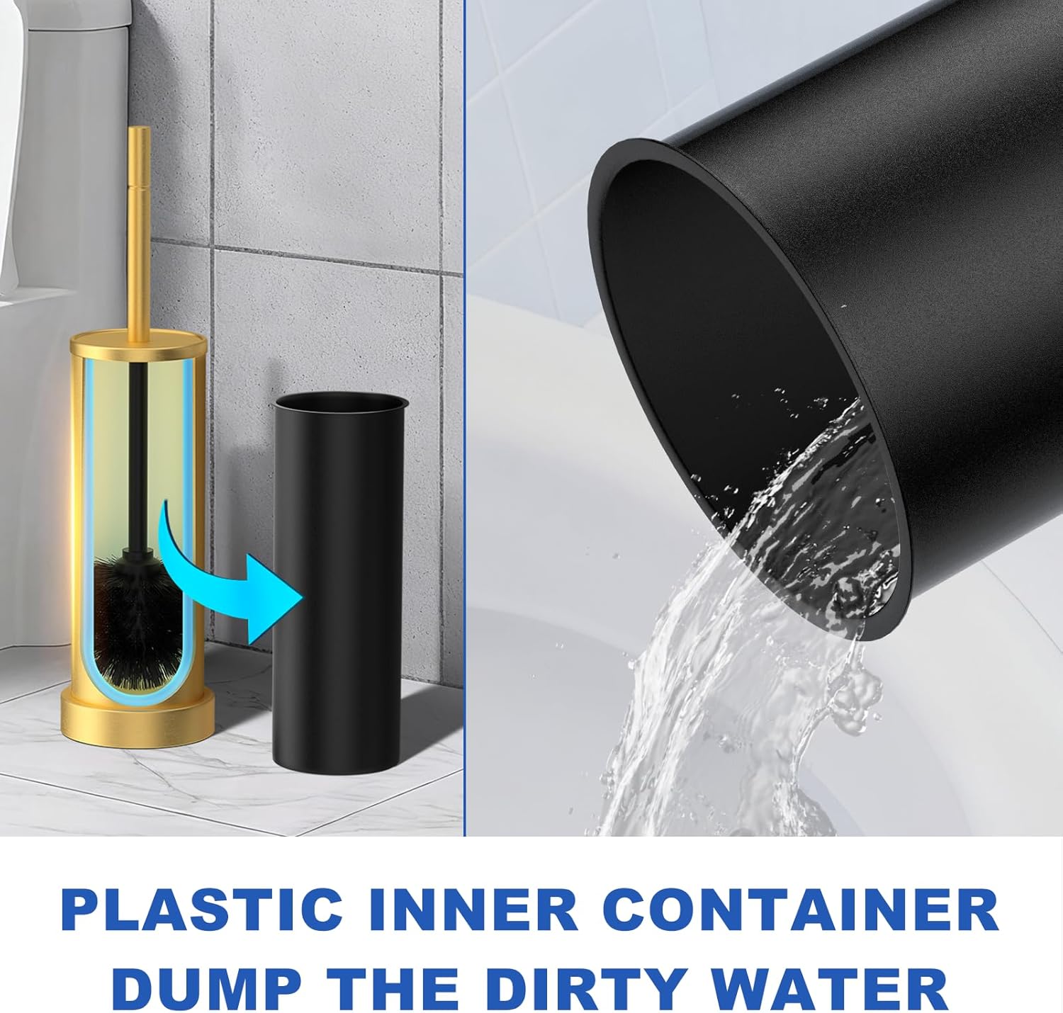 • Detachable Inner Tube & Heavy Duty Base: Stay safe and hygienic! The freestanding toilet brush holder has a weighted base to prevent tipping. Independent inner barrel design allows quick pouring of accumulated water—no more odors. The toilet brush holder comes with a protective sponge at the bottom to avoid scratching your floor when moving