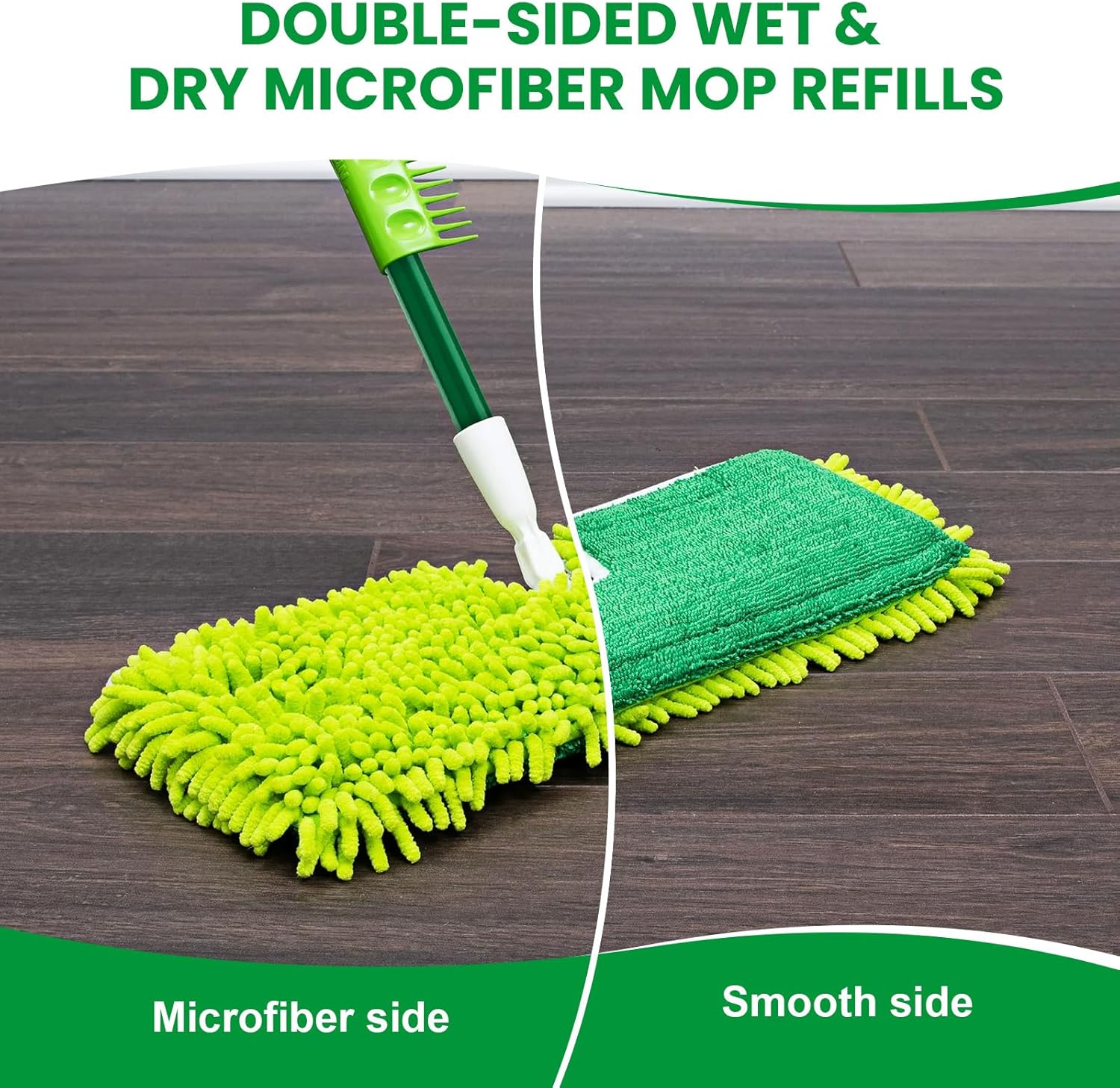 • Efficient Cleaning: Our 18" 2-Sided mop refills are made of microfiber material that absorbs dust, dirt, and pet hair. Its strong water absorption makes it easy to capture fine dust and dirt, leaving your floors looking brand new.
