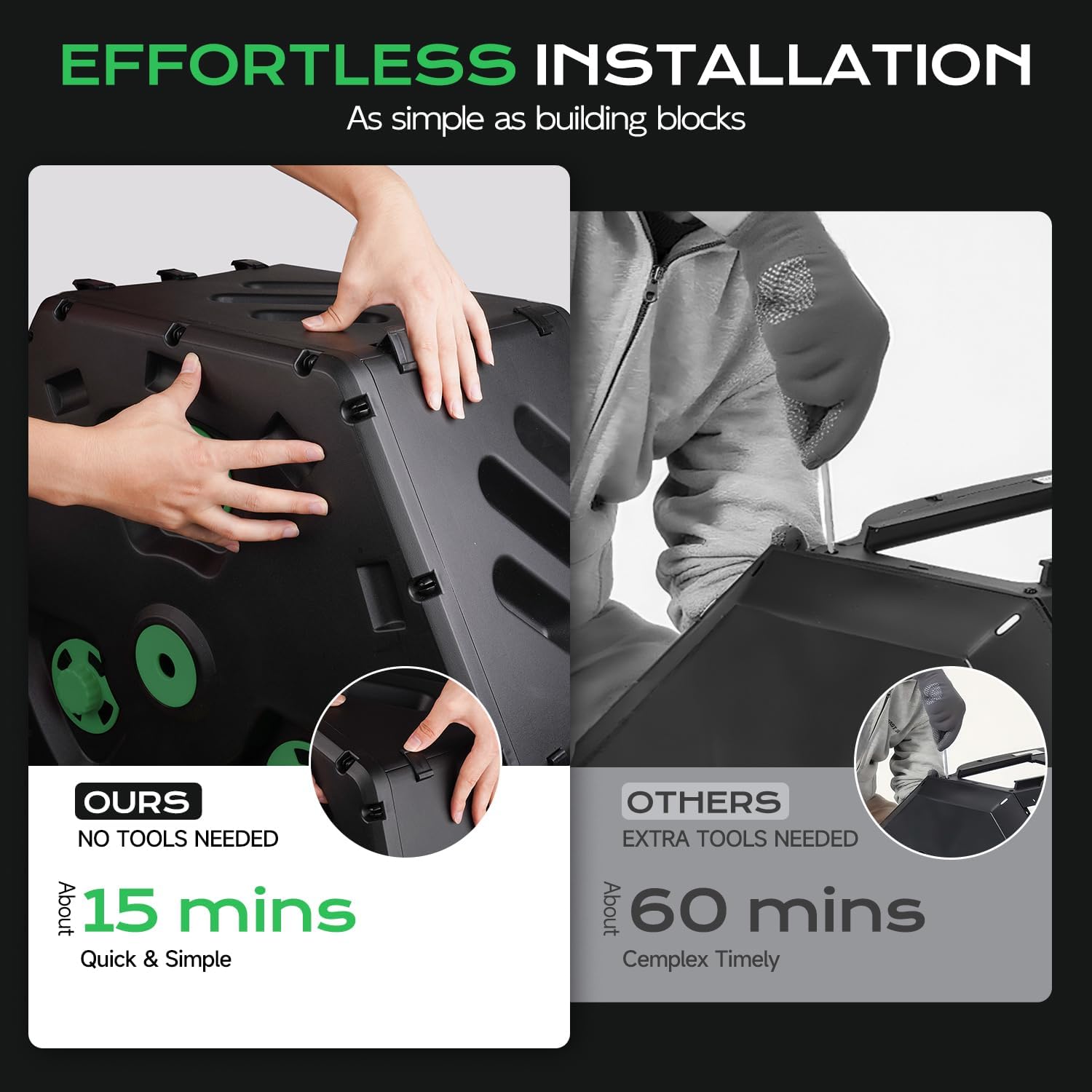 • 【SUPER Fast Assemble】[We provide STEP-BY-STEP installation videos; if you encounter any issues, please do not hesitate to contact.] Unlike traditional outdoor compost bins, TOP XIAN 2025 new upgraded compost bin assembles in minutes. Simply snap components together, no frustrating screws or wrenches. Ideal for composting beginners or anyone who hates complicated assembly
