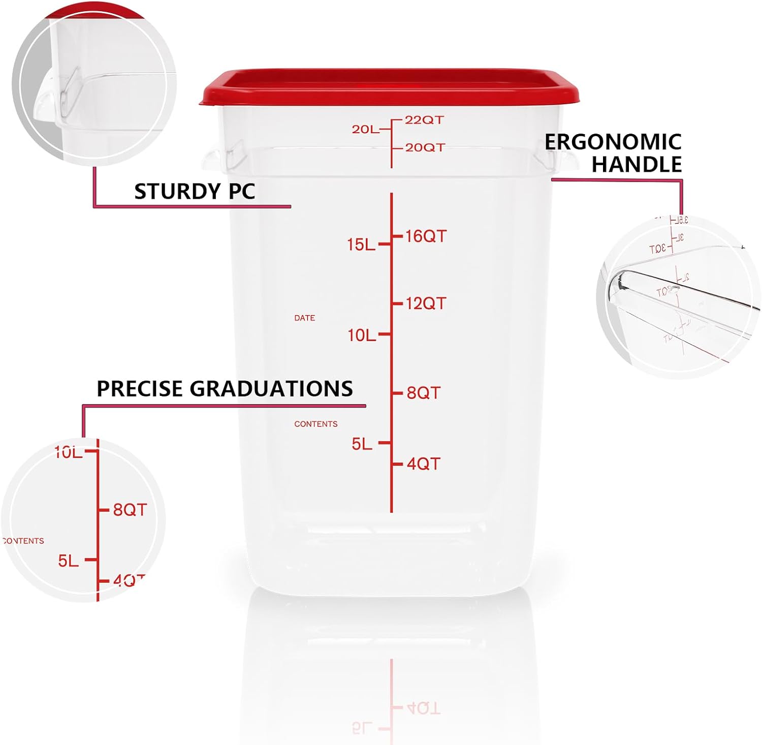 • 【Large Capacity】The cereal storage containers have a 22-quart capacity, providing ample space to store and organize food. The food containers with lids measure about 11.2 x 11.2 x 16 inches (28.4 x 28.4 x 40.6 cm) and weigh about 3.55 lb (1610 g). The containers for food are ideal for grains, or marinating large portions.