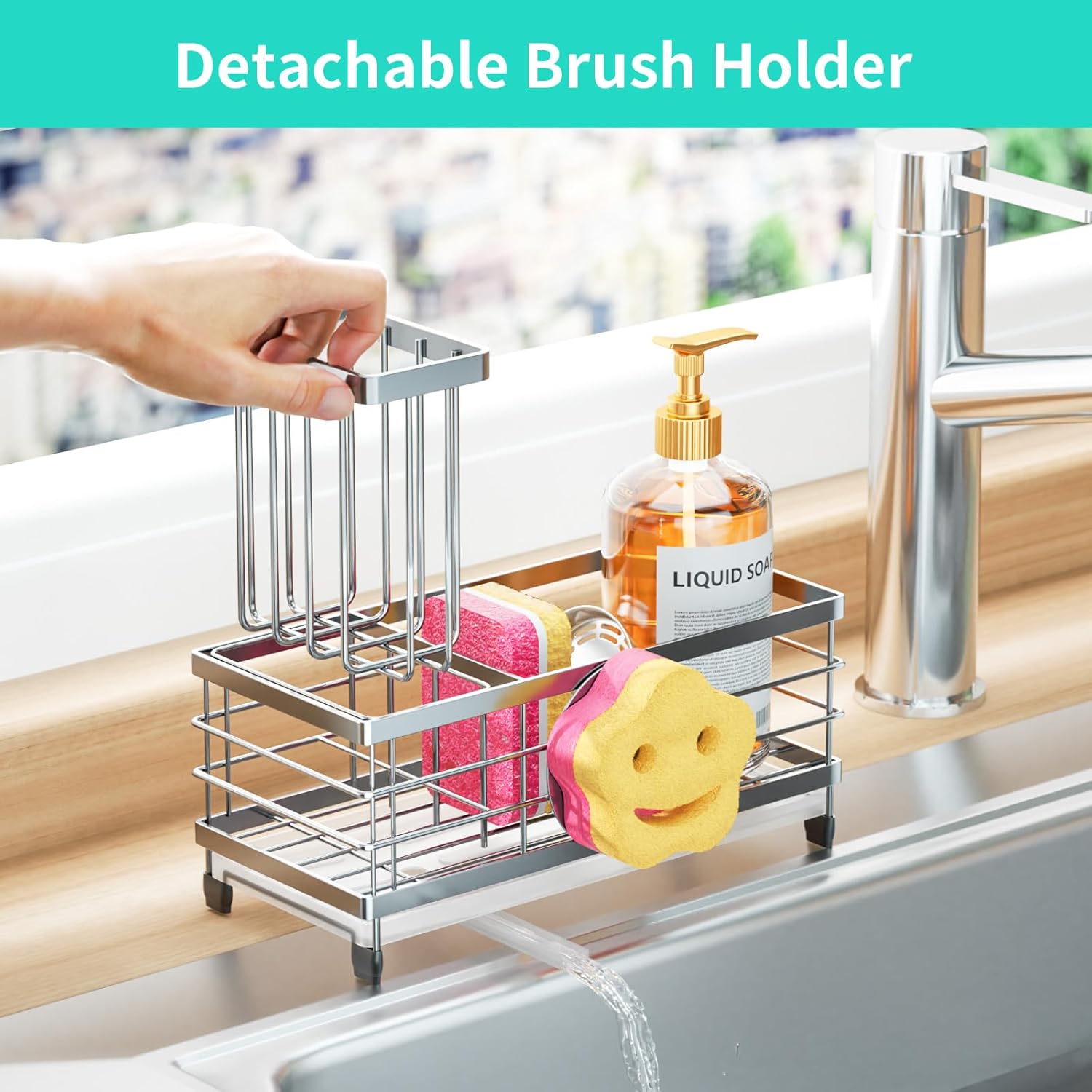 • [Detachable Brush Holder]: HapiRm sponge holder also comes with a removable brush holder, creating a dedicated spot for your dishwashing brushes. This kitchen caddy ensures a tidy kitchen and makes your cleaning tasks more efficient and organized