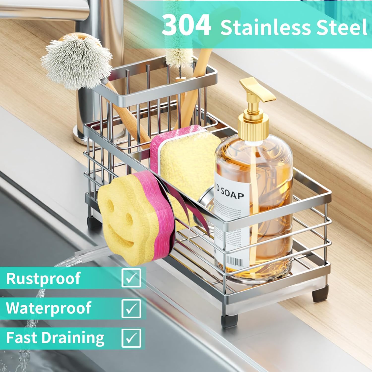 • [Durable Stainless Steel]: Constructed of 304 stainless steel, Hapirm kitchen sink caddy can effectively prevent rust even in wet conditions and has a long service life. Enjoy reliable storage with our dish sponge holder