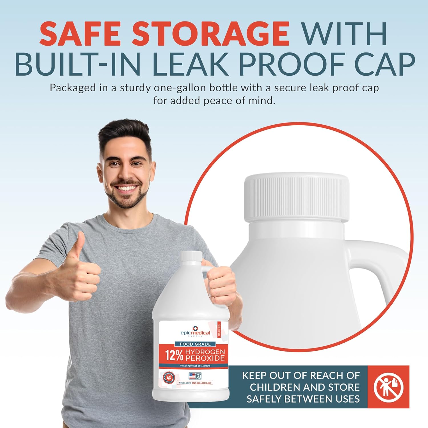 • SAFE STORAGE WITH BUILT-IN SAFETY CAP – packaged in a sturdy one-gallon bottle with a secure safety cap for added peace of mind. Always follow dilution and usage instructions carefully—this strong oxidizing agent may be corrosive to eyes. Keep out of reach of children and store safely between uses