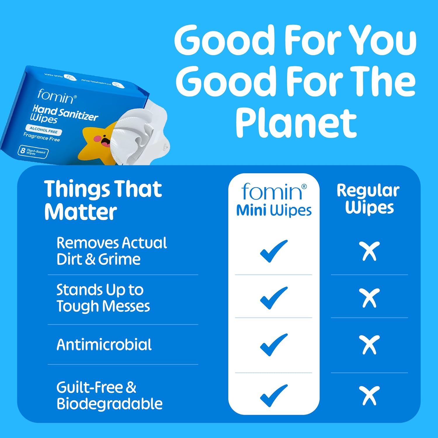Fomin Mini Hand Sanitizer Wipes 30 Pack (8 Count) - Fragrance Free Mini Wet Wipe - pH Balanced, Biodegradable, Antibacterial On The Go Hand Sanitizing Wipes - Hypoallergenic, Plant-Based Travel Wipe