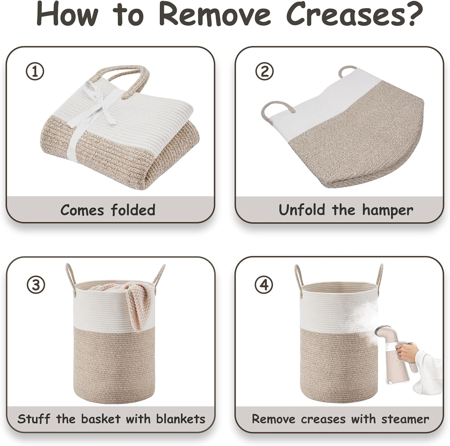 • ❤【Restore Elegant Shape】 To improve shipping efficiency, foldable woven rope hampers are packed compactly. You can put some blankets or small quilts in it and give it some time to regain its shape. Iron is a great idea to remove the creases.