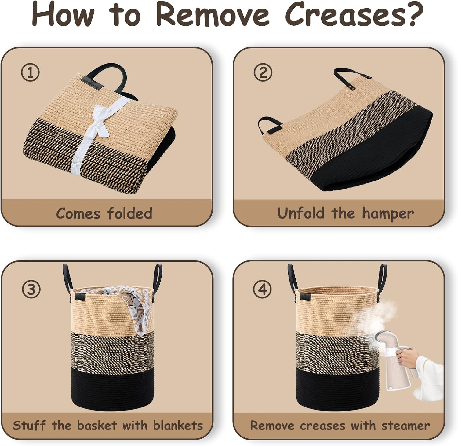 • ❤【WAY TO RESTORE ELEGANT SHAPE】 Our collapsible baskets are folded during shipping. Please fill the hamper with clothes or blankets for a period of time. If you want to remove creases from the surface of the tall basket, you can use a steamer.