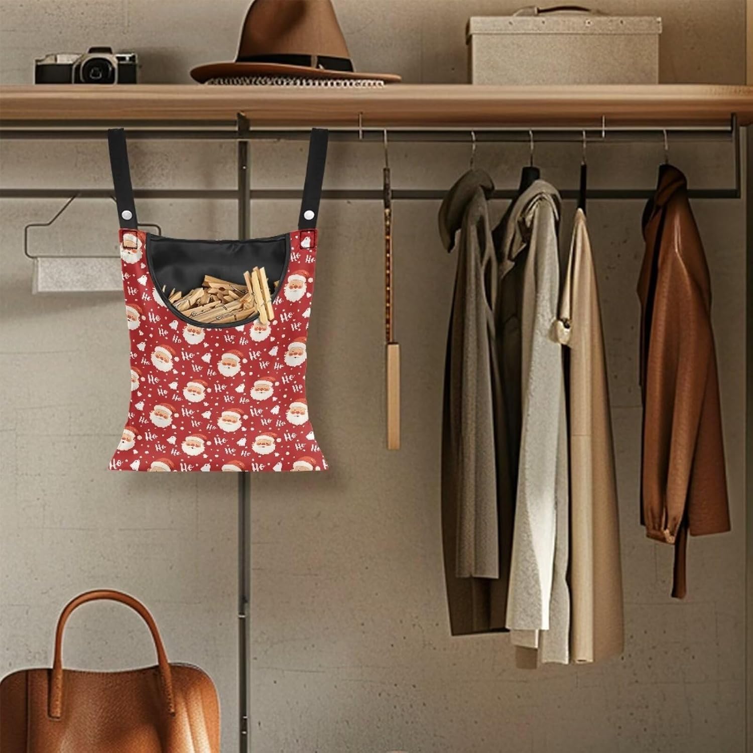 Clothespin Bag with Hanging Rope for Home Outdoor,Laundry Hanging Bag Fits Clothes Lines for Hanging Clothes Outside Balcony Bathroom Corridor Yard - Santa Claus