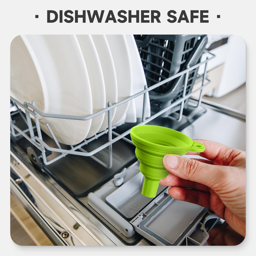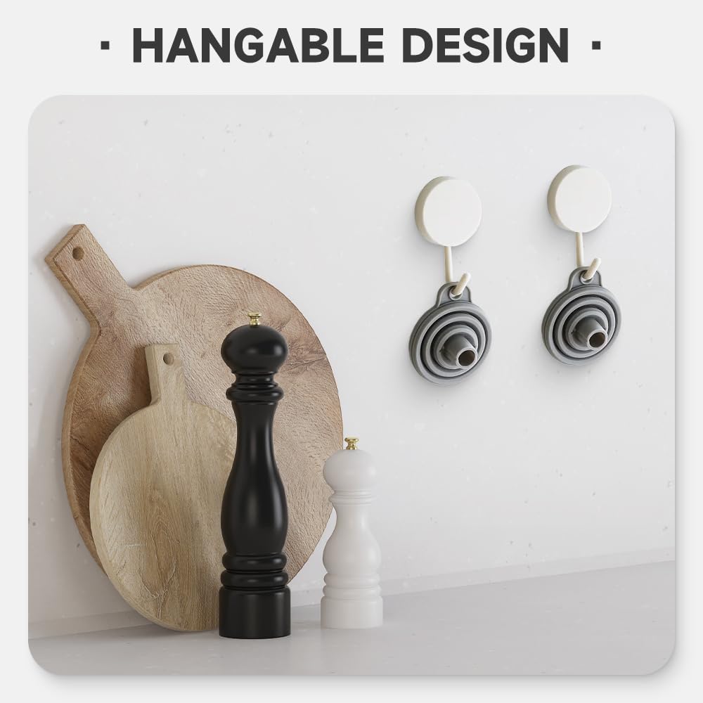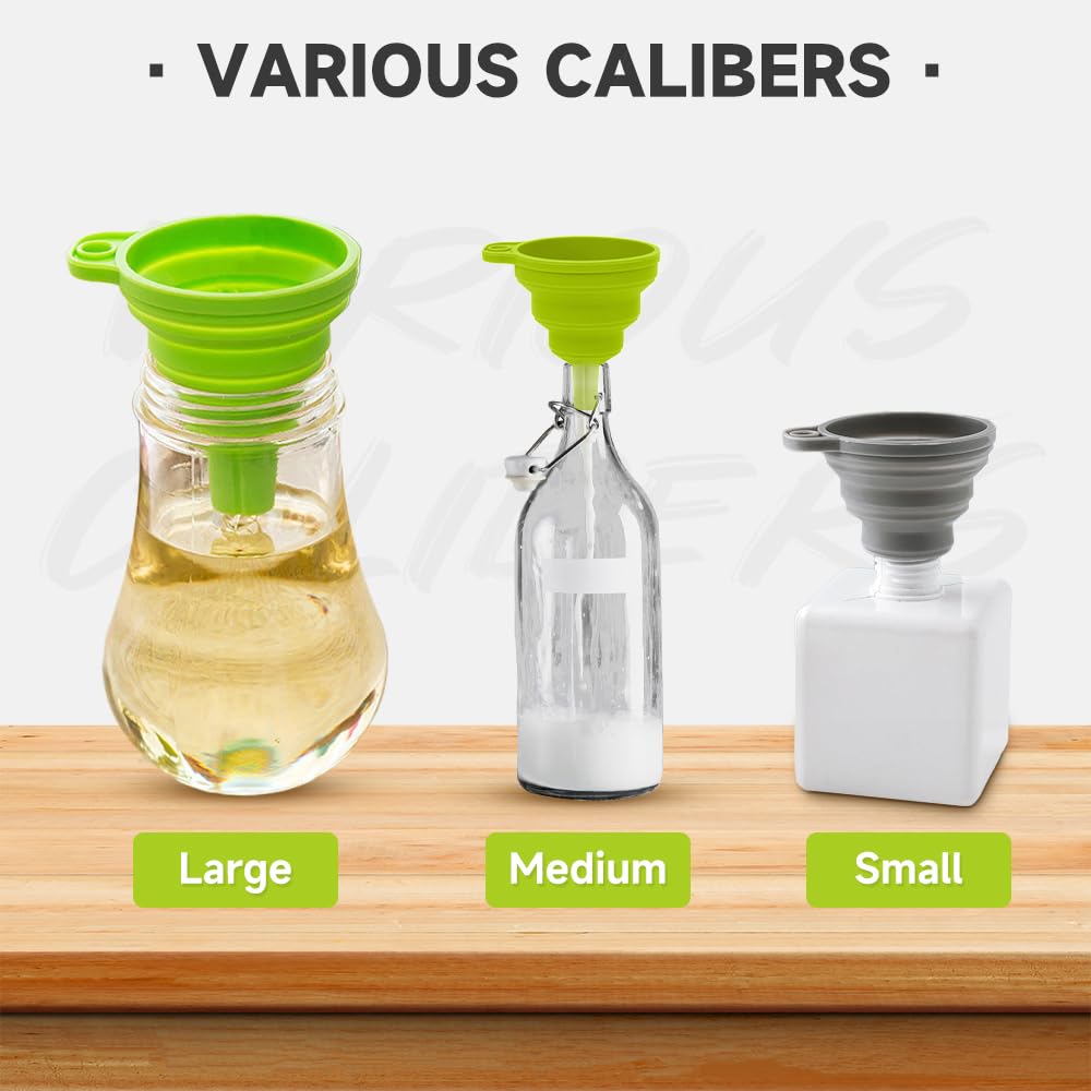 • 🔒 Food-Grade Silicone: Safe & Odor-Free: Crafted entirely from food-grade silicone, all funnels pass strict safety tests—BPA-free, odorless, and heat-resistant (-40℃ to 230℃). They remain stable and non-toxic even when in contact with hot oil, boiling water, or acidic sauces, ensuring peace of mind for you and your family.