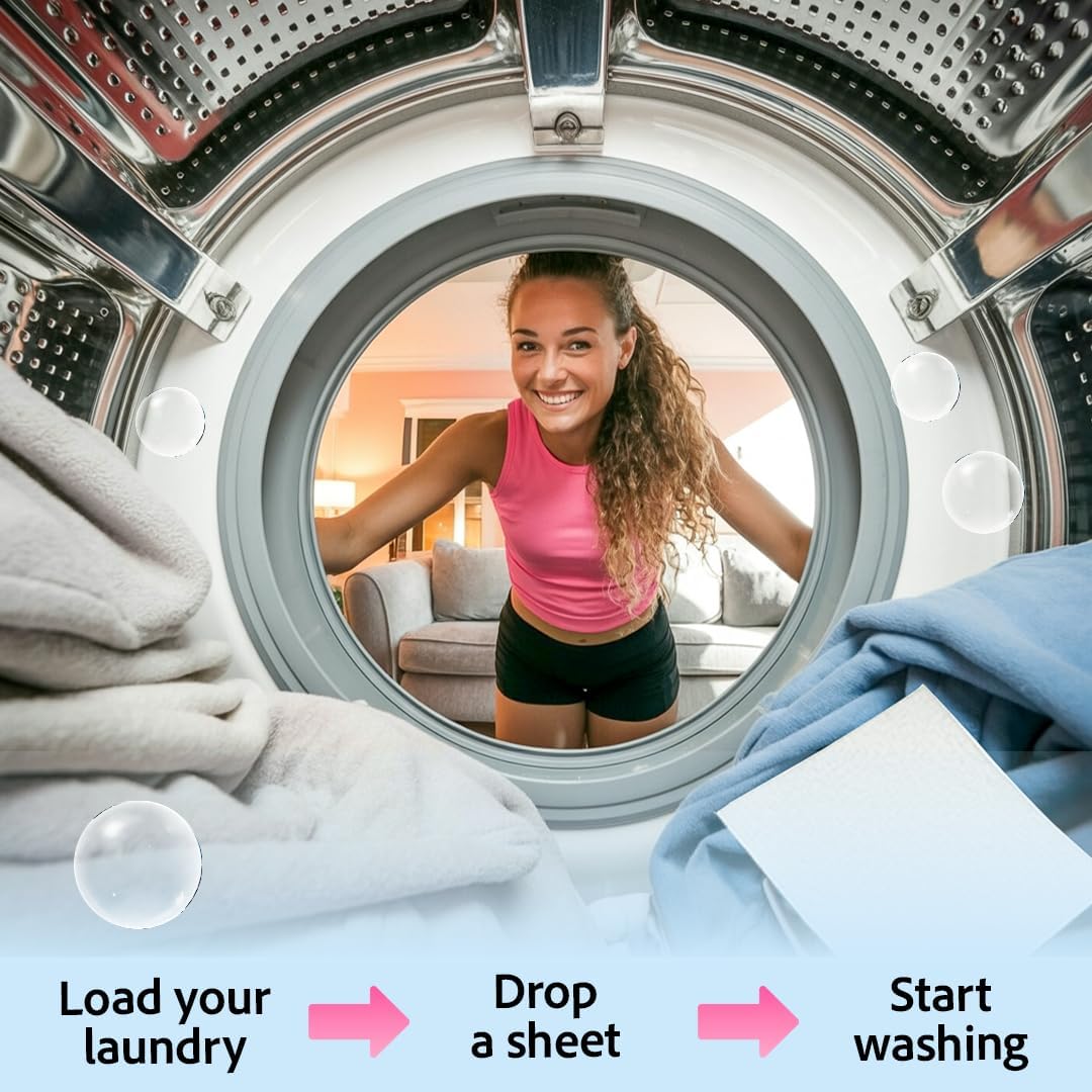 • EASY TO USE, POWERFUL CLEAN: Each pre-measured laundry sheets detergent works in all washing machines (HE included), with hot or cold water, and even for hand washing. The power sheets laundry detergent fights odors, lift stains, and soften clothes – no measuring, no mess.