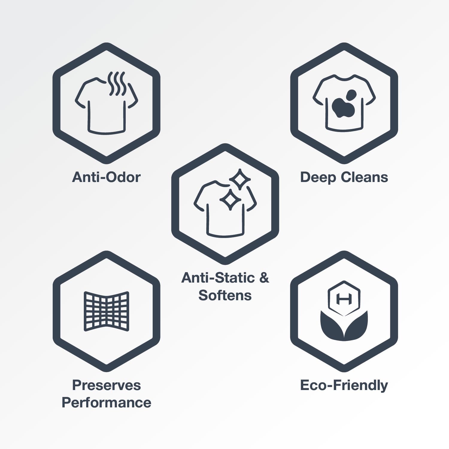 • POWERFUL FORMULA: Traditional laundry soap leaves leftover residue behind that corrode and clog your high-performance gear leaving them smelly and reducing their wickability. HEX Performance liquid active wear laundry detergent penetrates today’s ultra tight-knit performance fabrics, like your favorite yoga tops, leggings, sport bras, or compression shorts.