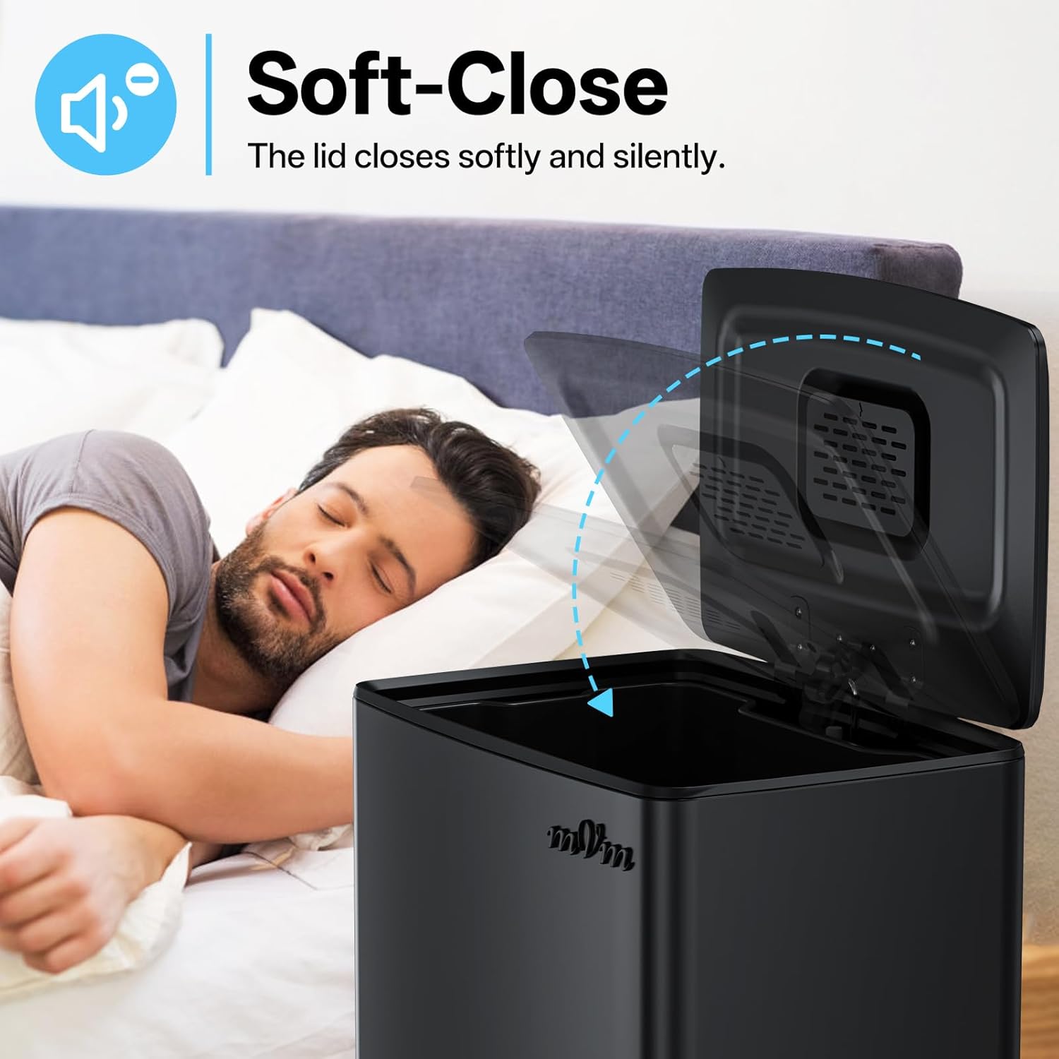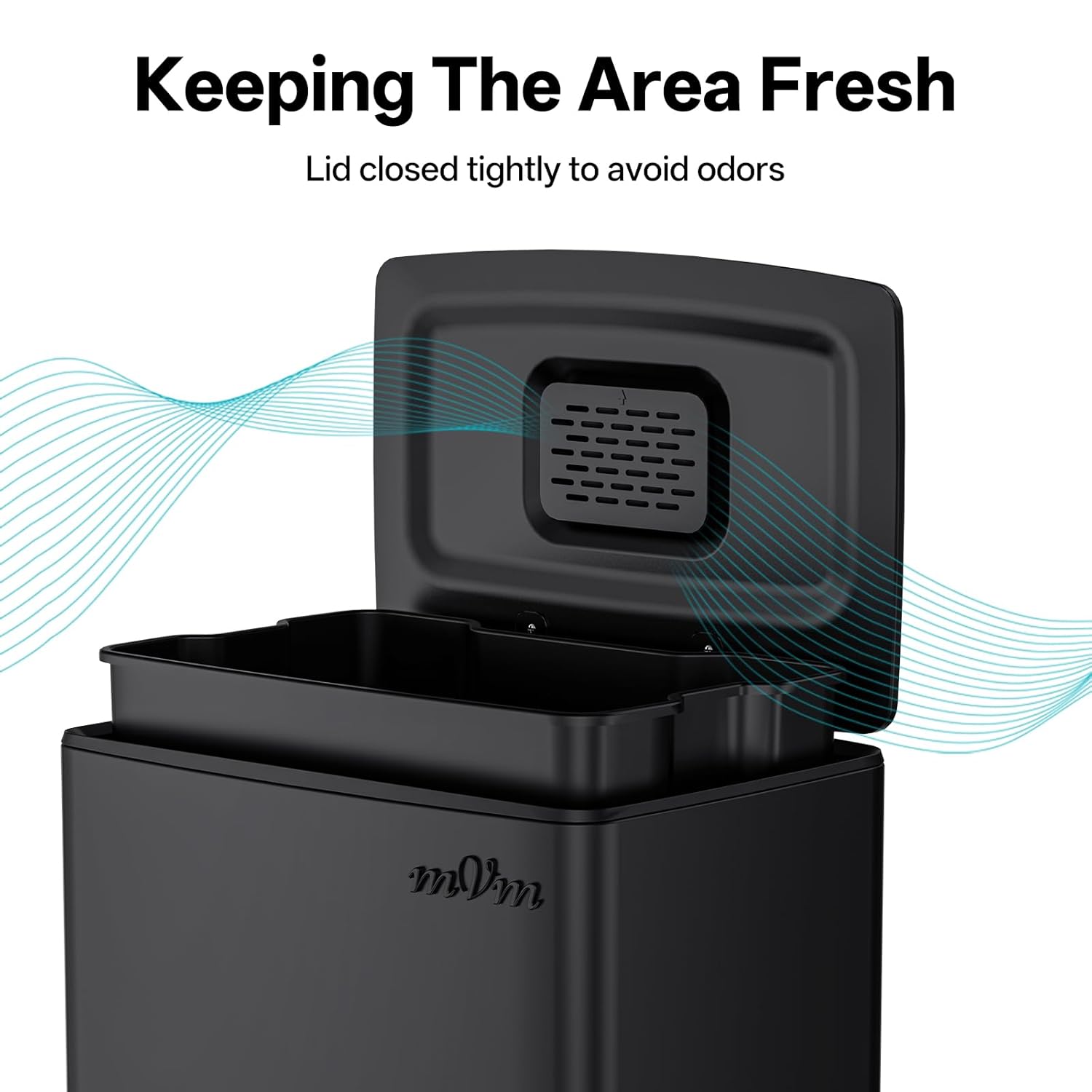 • Odor seal: The mVm trash bin is equipped with a carbon fiber filter that absorbs and neutralizes odors inside the bin, and the lid closes tightly to prevent odors from escaping.