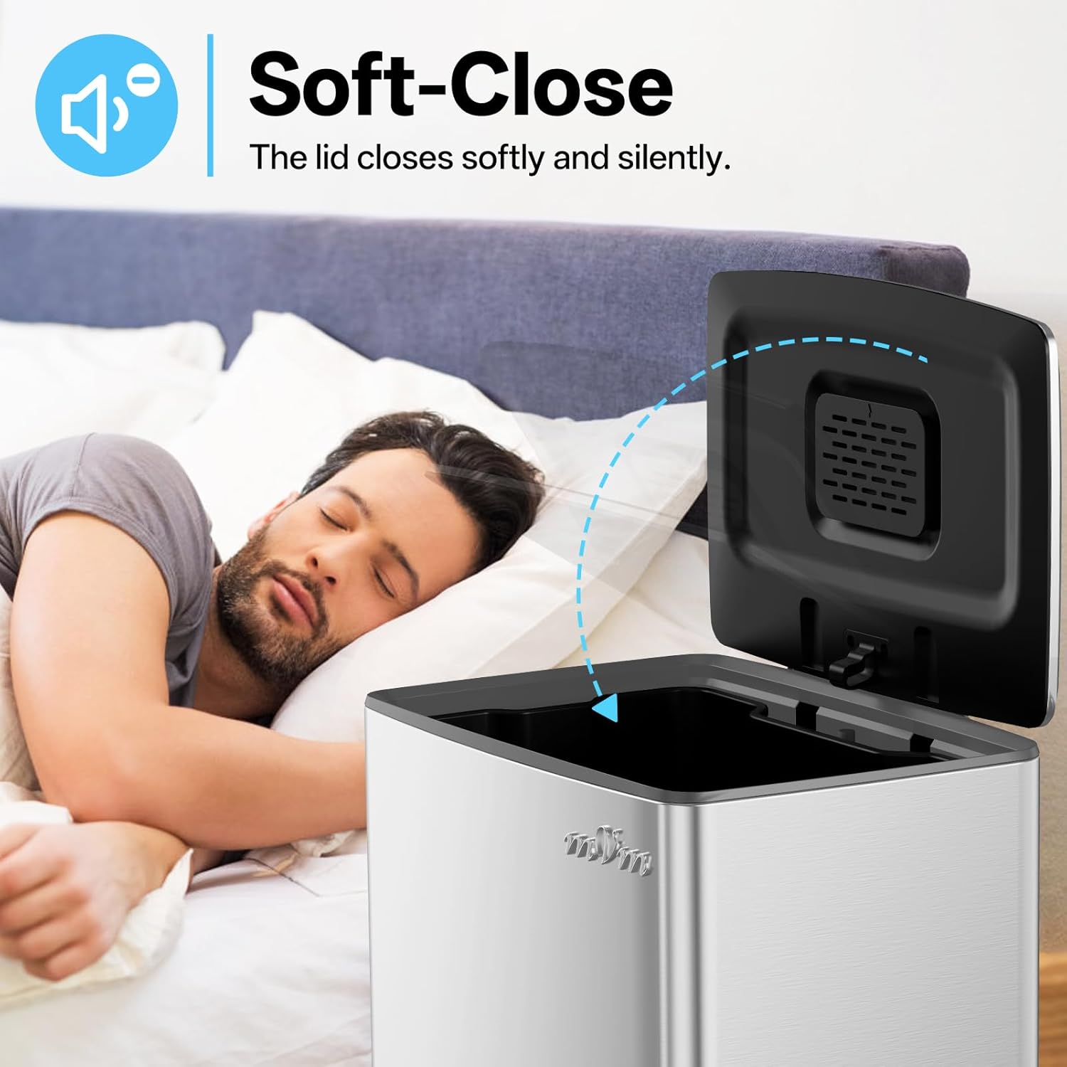 • Odor seal: The mVm trash bin is equipped with a carbon fiber filter that absorbs and neutralizes odors inside the bin, and the lid closes tightly to prevent odors from escaping.