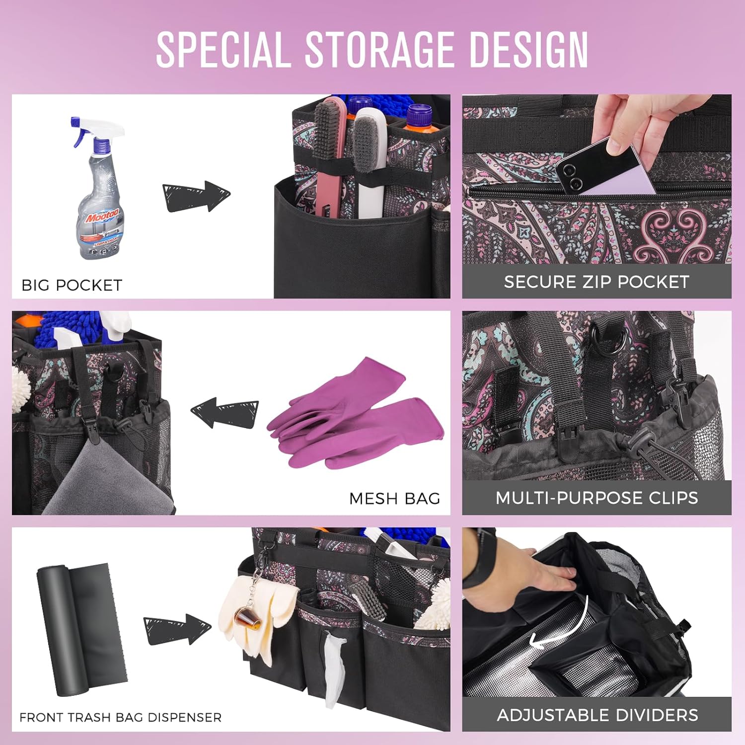 Wearable Cleaning Caddy, Cleaning Caddy Supplies Organizer with Handle & Shoulder Straps for Housekeepers, Under Sink & Car Cleaning Tool Organizers Bag with 4 Foldable Divider (Totem)
