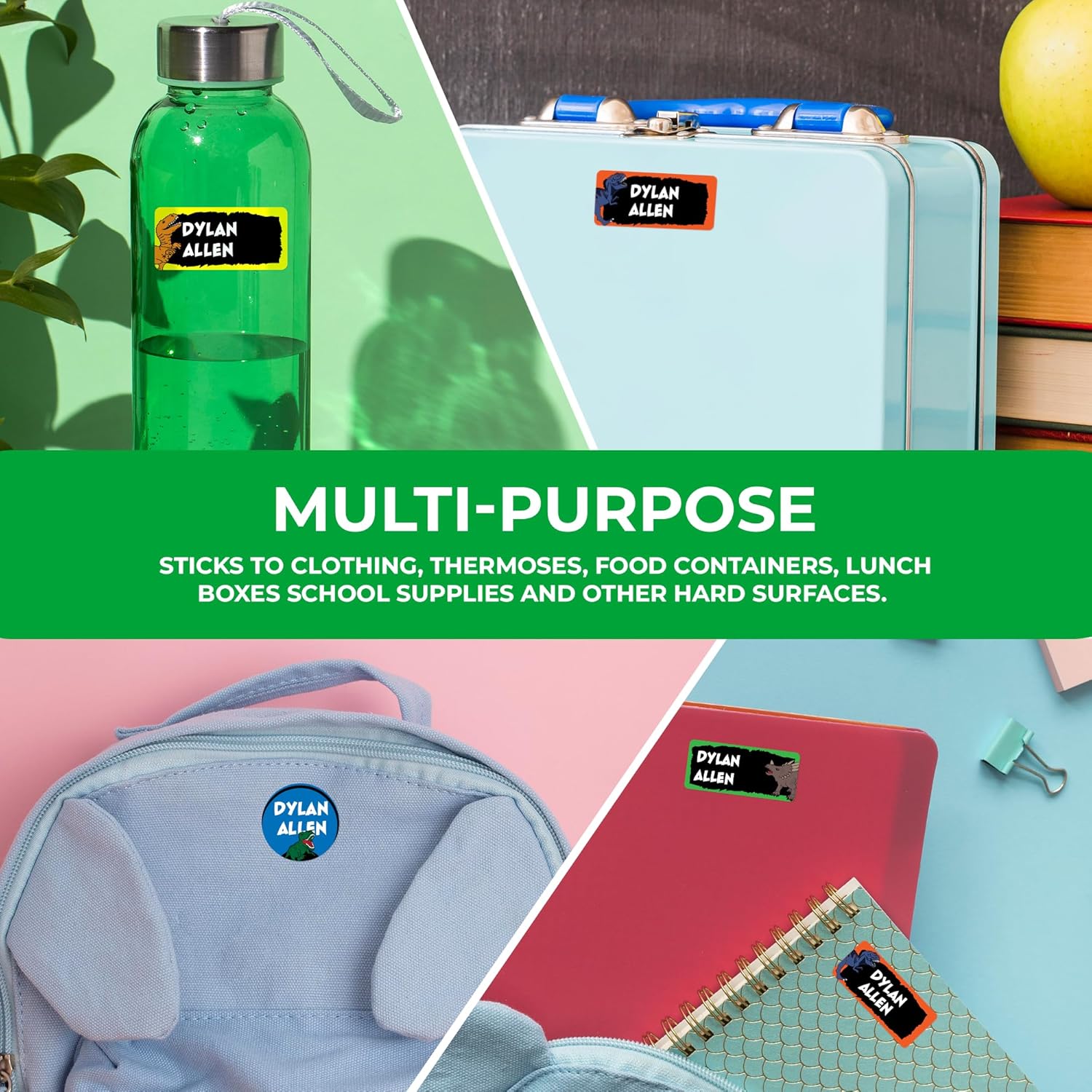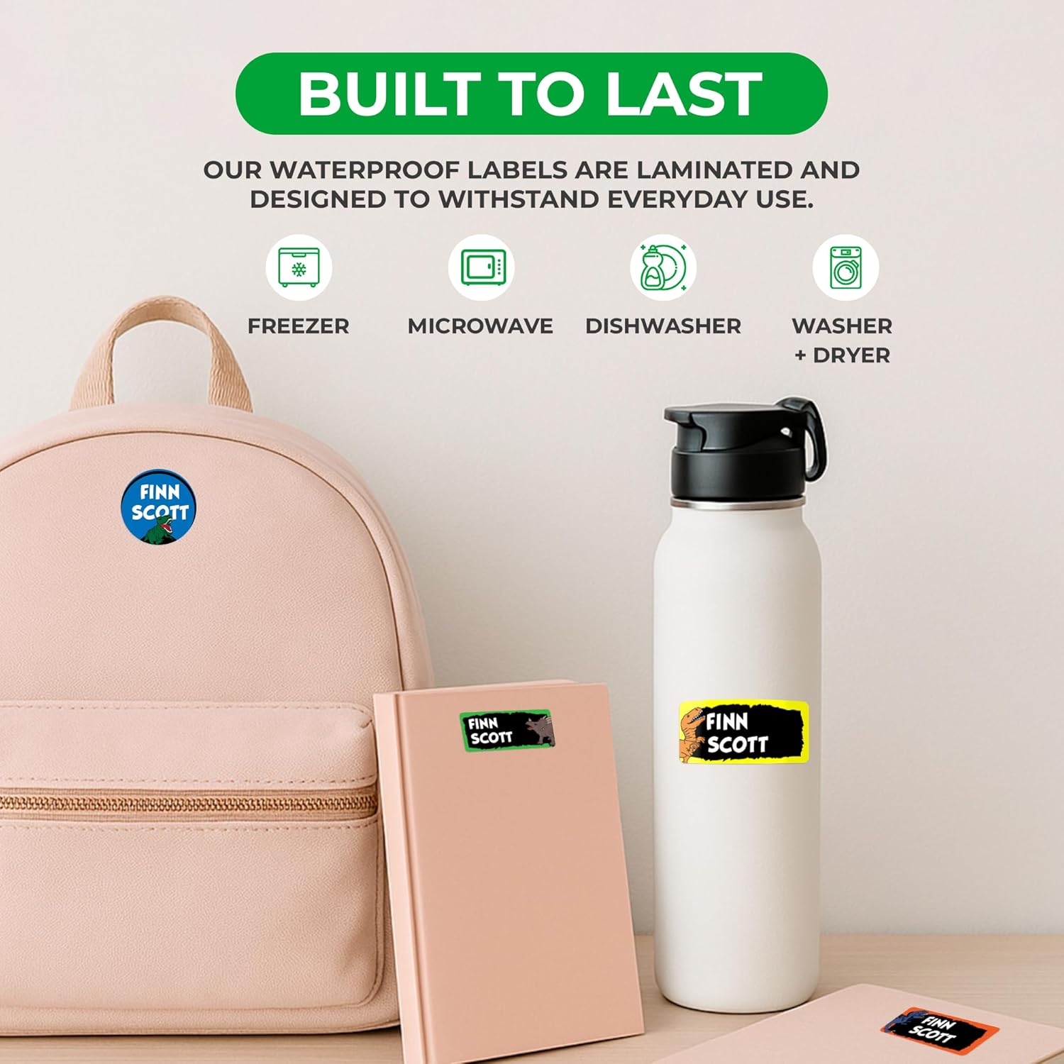 • 💧 Waterproof Stickers & Fade-Resistant — Laminated for long-lasting use, our custom stickers personalized won’t peel, fade, or rub off. Keep your kid’s name visible no matter where the day takes them. These waterproof vinyl labels stick to bottles, lunch boxes, clothing, notebooks, and more. Designed to survive dishwashers, microwaves, freezers, and even washer/dryers!