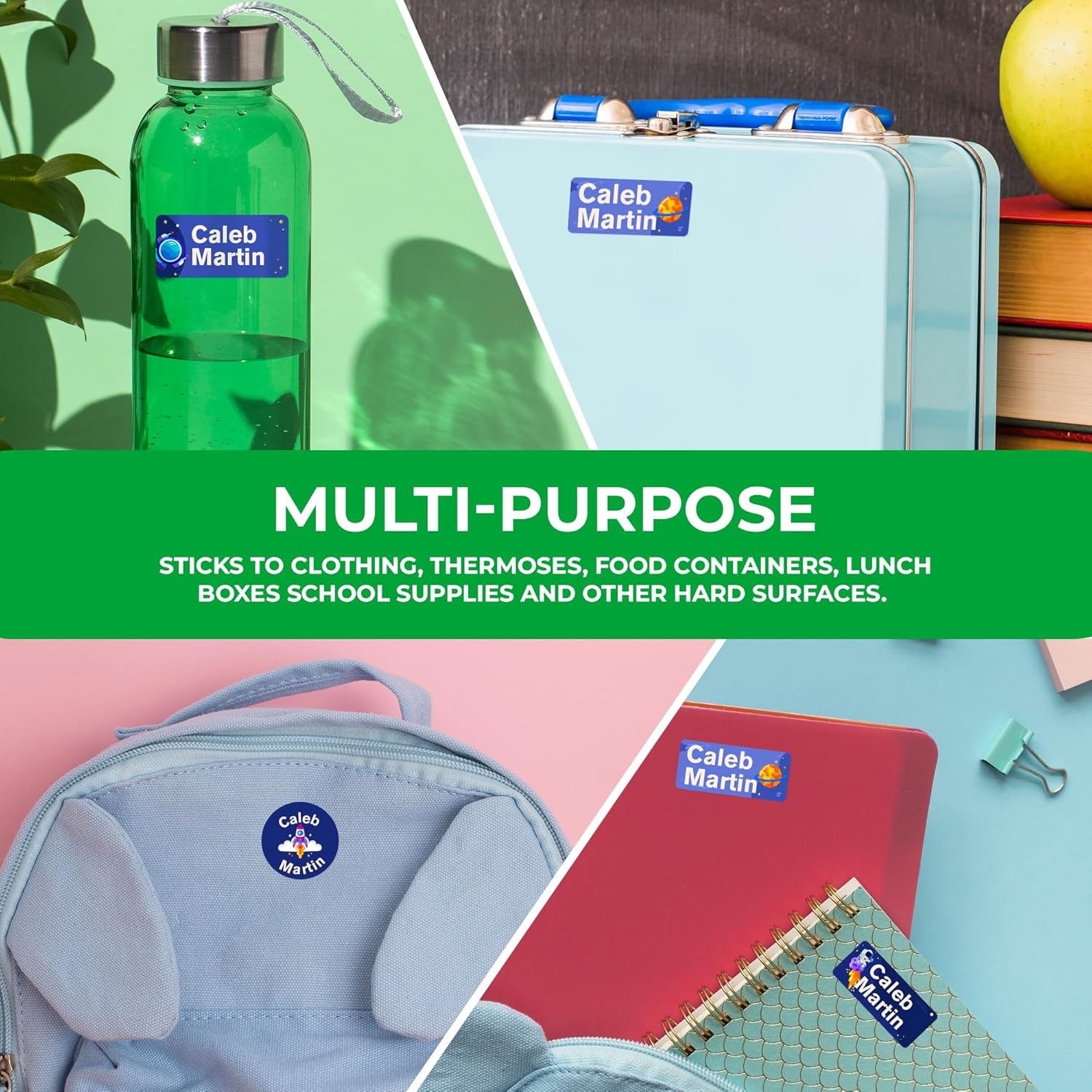 • 🪐 Personalized Name Labels for Kids — Add your child’s full name to colorful, space-themed personalized stickers that make organizing fun and easy. These name tag stickers help prevent lost items at school, daycare, or camp while encouraging kids to identify their own belongings with pride. Great for boys and girls of all ages.
