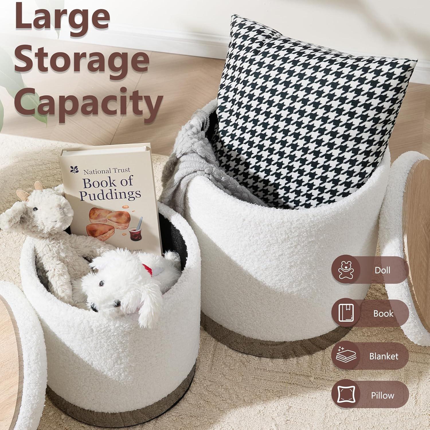• 【Perfect Space-Saving Set of 2】This round storage ottoman set includes two thoughtfully sized pieces designed to stack neatly together. The larger ottoman measures 14.76" x 14.76" x 17.32", while the smaller one is 12.6" x 12.6" x 14.17". This smart design offers a convenient space-saving solution, perfect for keeping your living room, bedroom, or entryway organized and clutter-free.