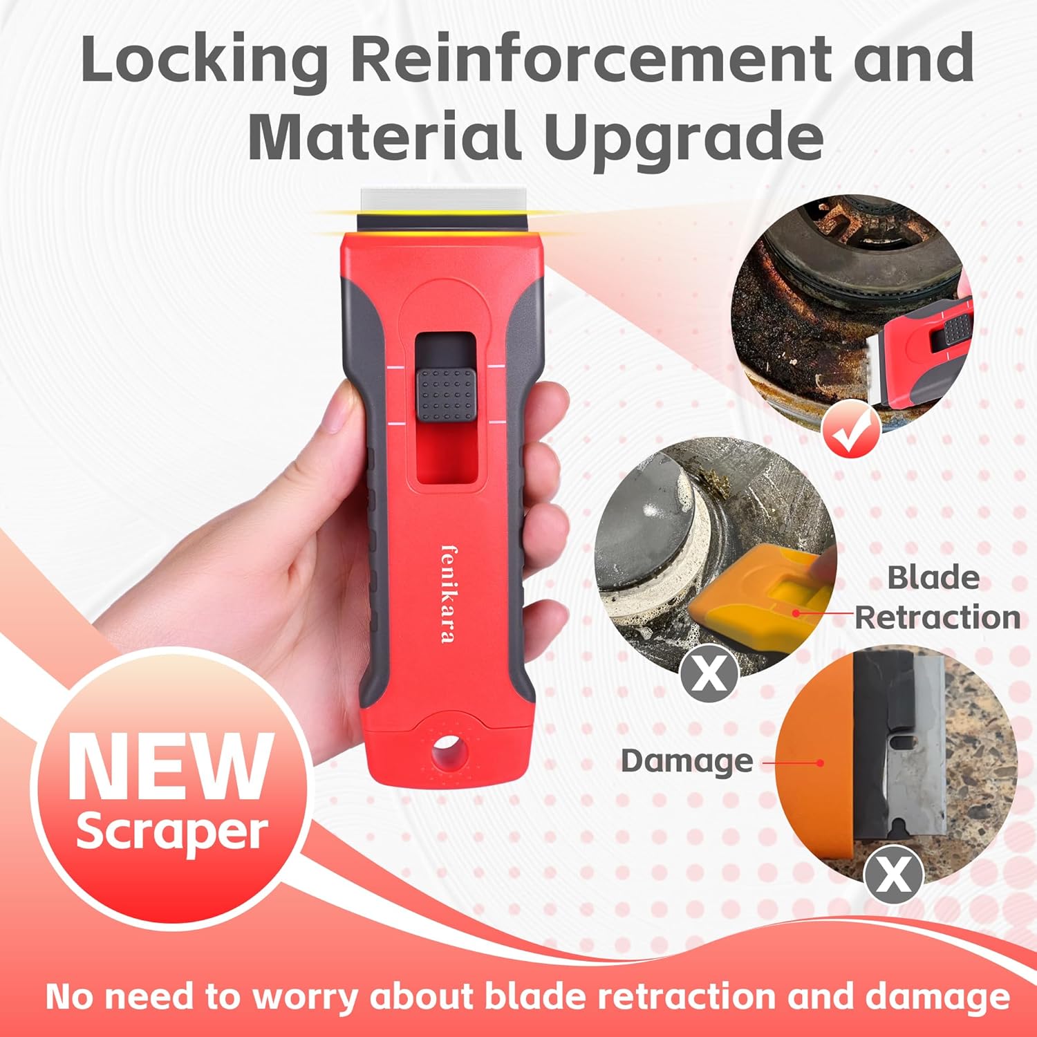 • 【Upgraded Retractable Magnetic Razor Scraper Tool】 Experience unparalleled performance with our upgraded retractable plastic scraper. Engineered with premium materials and a refined internal structure, it ensures smooth and reliable operation without slipping or retraction issues. The reinforced core provides exceptional durability, making it perfect for heavy-duty cleaning tasks on various surfaces.