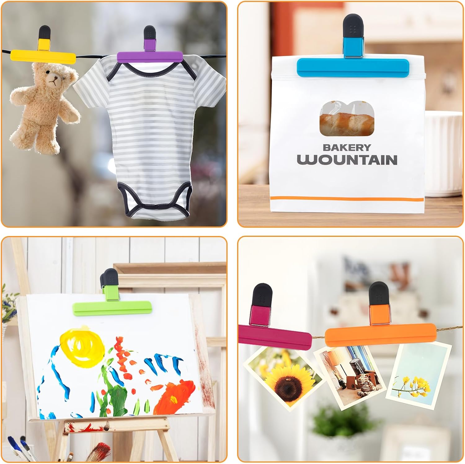 • 【Widely Application】The bag sealer clips can not only be used to seal various bags, but also can be used to secure documents, notes, photos, drawing boards, dry clothes, etc. Suitable for home, office, kitchen and other occasions