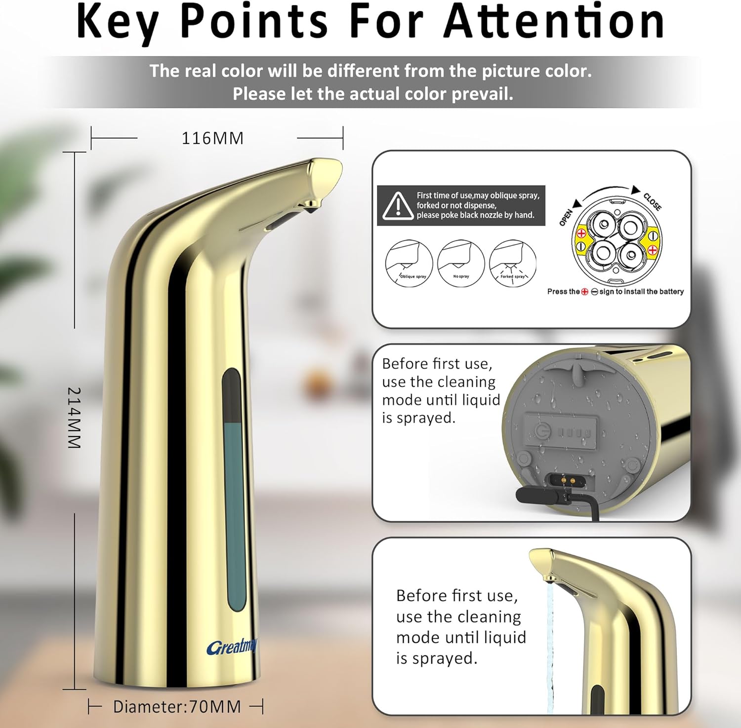 Convenient Automatic Soap Dispenser,4 Adjustable Levels Touchless Hand Sanitizer Pump with Infrared Sensor, 400 ml Countertop Electric Soap Dispenser for Bathroom,Kitchen (Gold2)