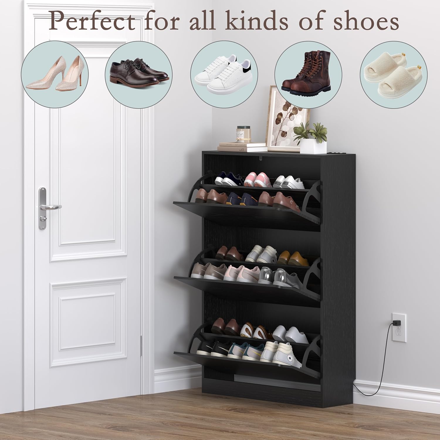 Shoe Cabinet with Odor Control and Back Panels, Deodorizing Slim 3-Flip Shoe Storage Cabinet for Entryway, Freestanding Hidden Shoe Rack Organizer for Entrance, Hallway, Bedroom