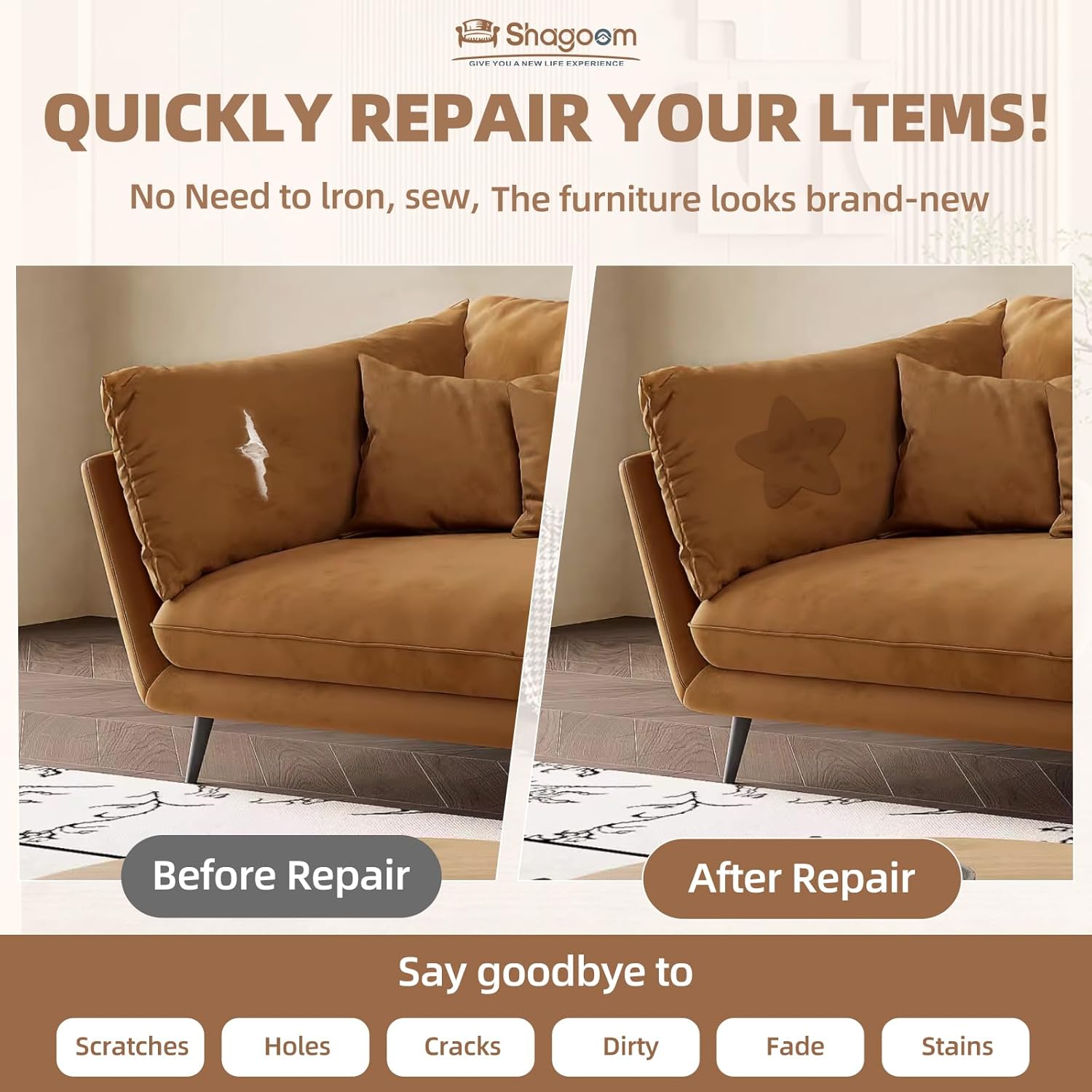 • Excellent Product: It can be used to repair all kinds of fabric damage, such as tears, holes, pet scratches, fading, burns, and other related issues.