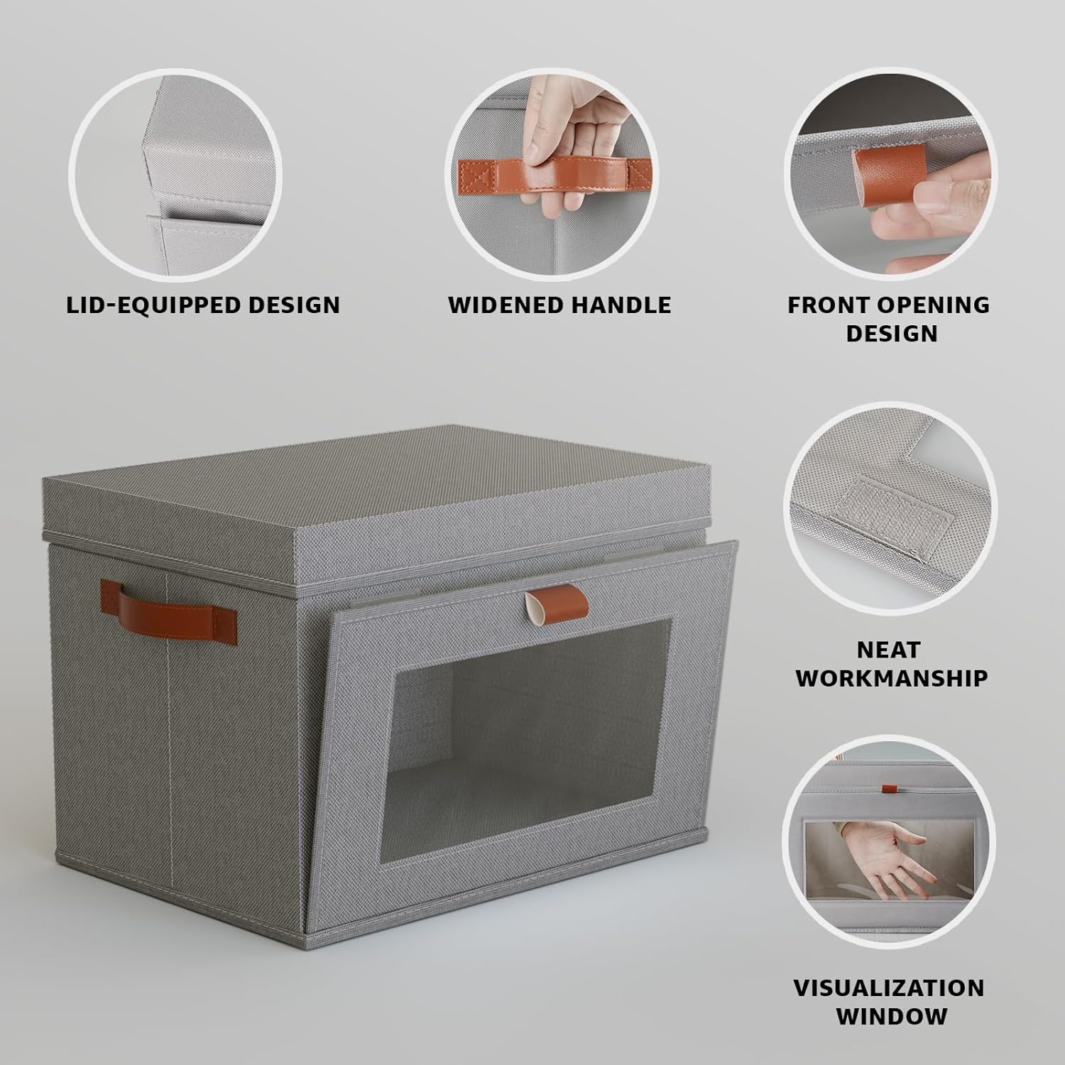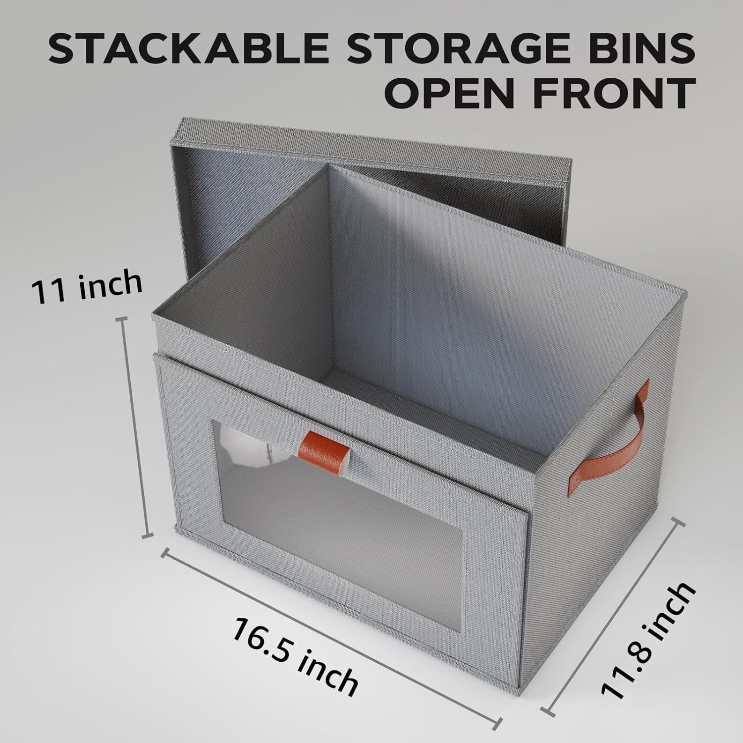 Large Storage Bins with Lids,Stackable&Collapsible Closet Storage Bins,Oxford Fabric Organizer Box with Clear Window,Large Decorative Storage Boxes for Shelves,Wardrobe,Living Room,Dorm(Grey)