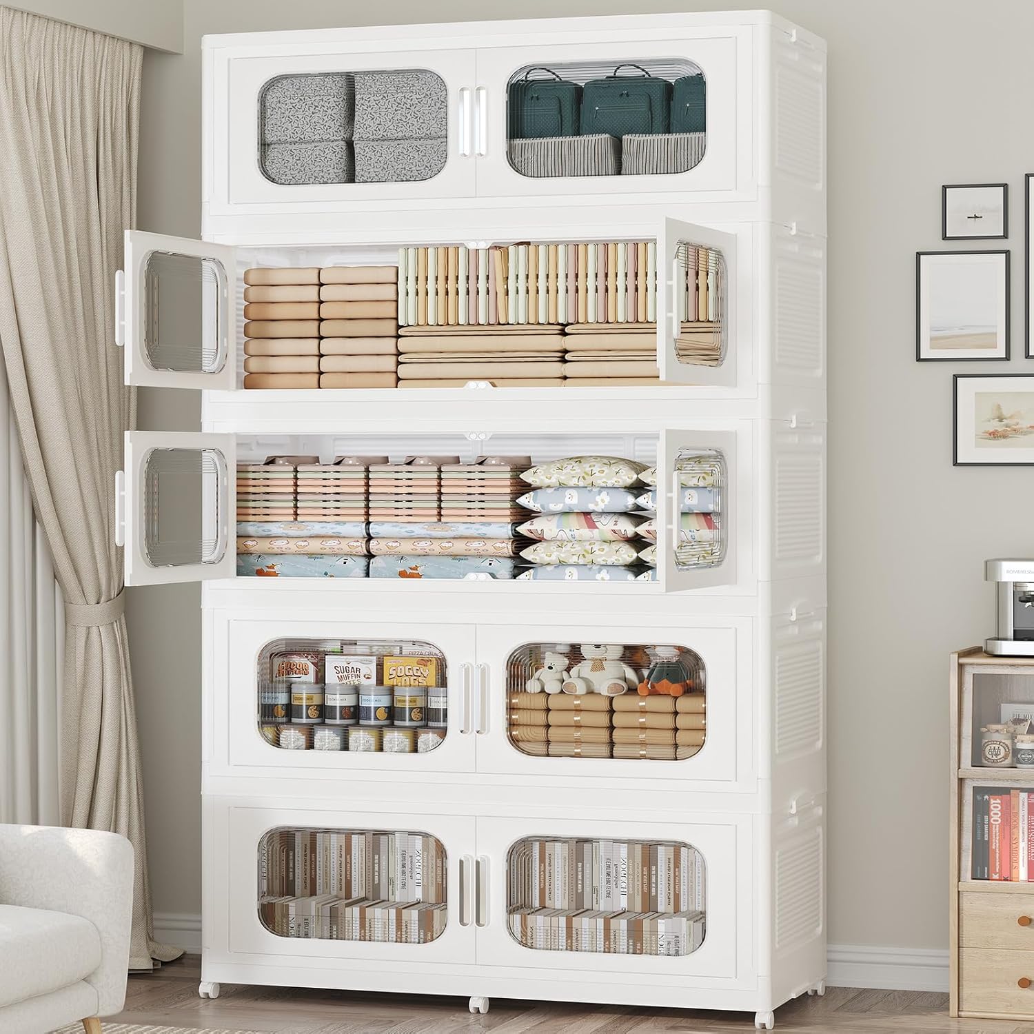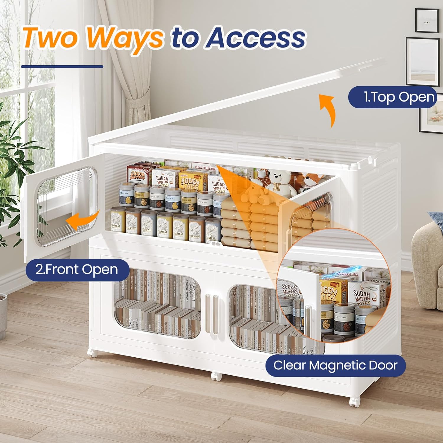 • 【Two Ways to Open & Magnetic Easy Access】The collapsible storage bins with doors and wheels feature a dual access way, allowing for both top and front door openings, and with clear brown windows for easy visibility. The extra large storage bins with open front doors are equipped with magnetic lock buckles to prevent dust from entering the cabinet.