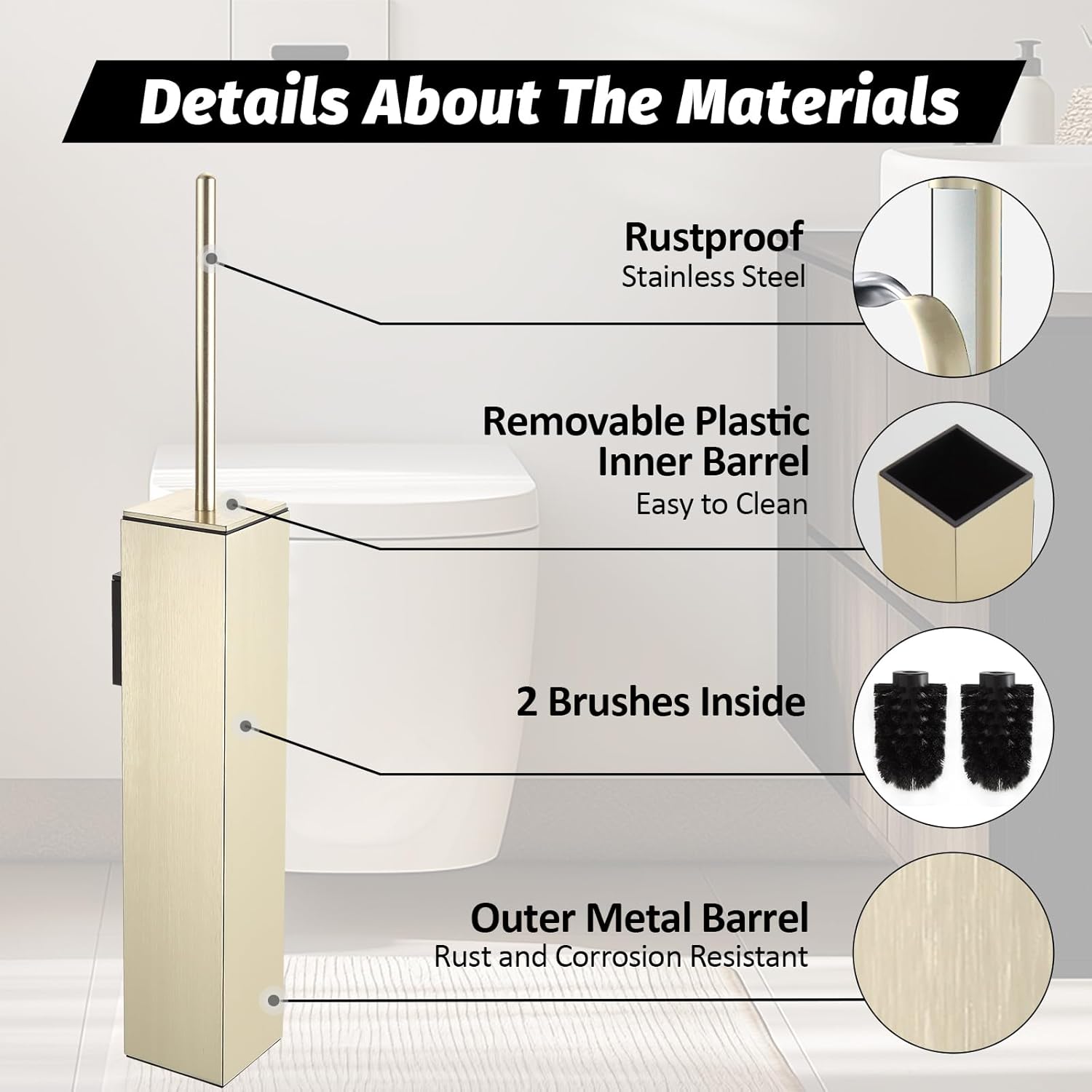 BGL Toilet Brush and Holder Set Brushed Gold Wall Mounted for Bathroom Square Design