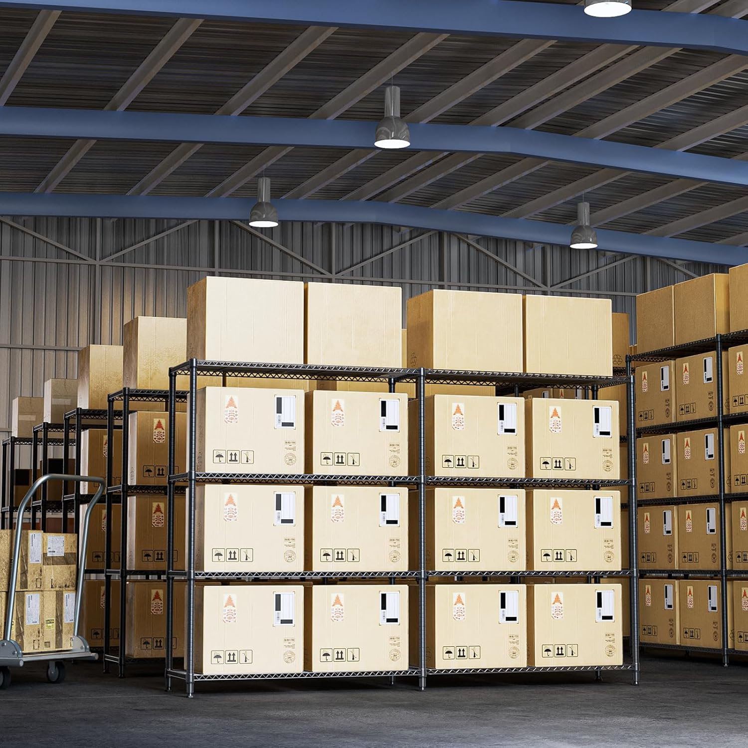 IZEUK 1147 LBS Garage Shelving Wide Storage Shelves Metal Shelves Heavy Duty Adjustable Utility Shelf Rack (Black, 4 Tiers, 15.7" D x 33.5" W x 59.5" H)