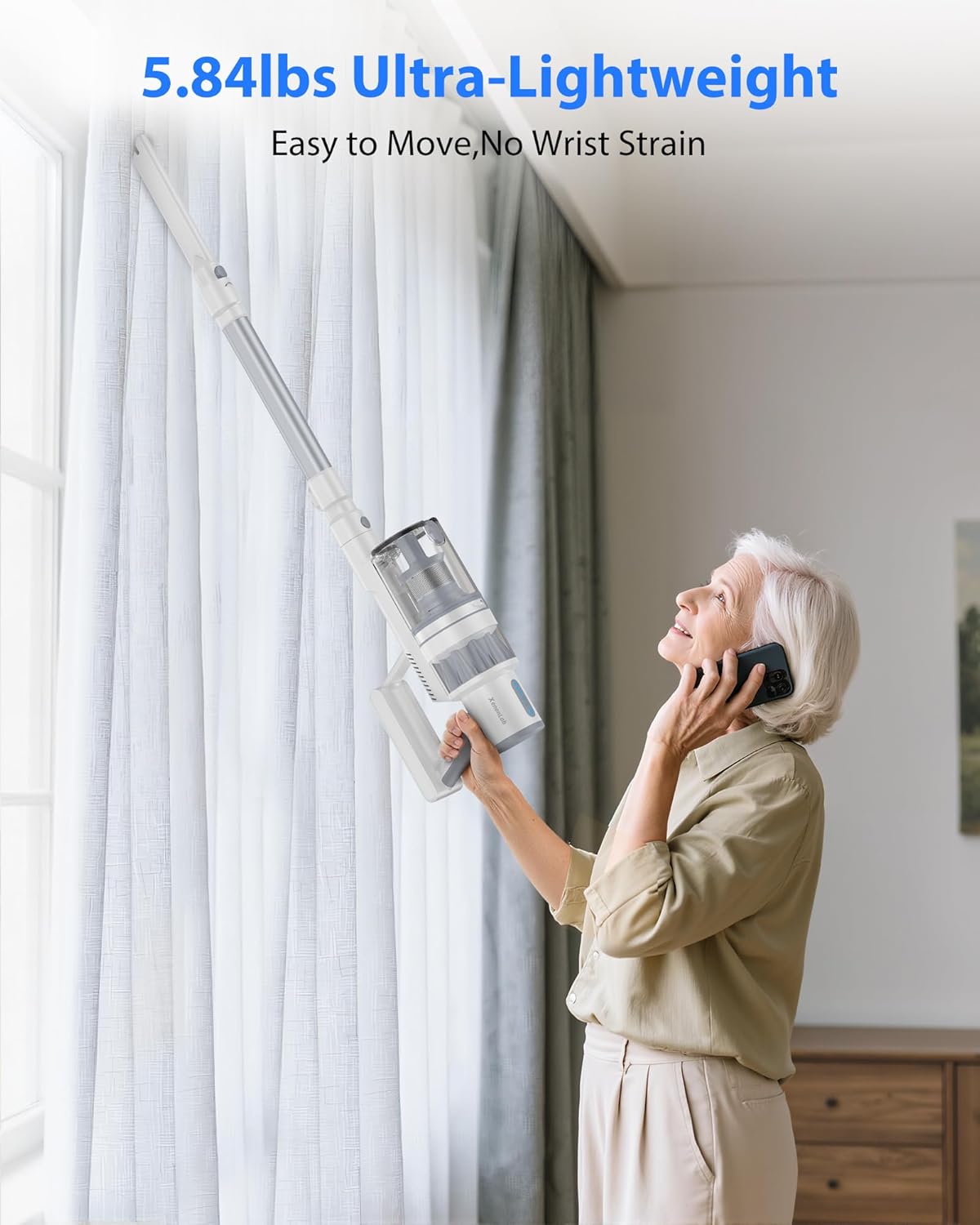 Cordless Vacuum Cleaner, 45KPA Stick Vacuum Cleaners for Home, 6-in-1 Rechargeable Lightweight Vacuum, Up to 35Mins Runtime, with Powerful Suction for Carpets, Pet Hair, Hardwood Floors