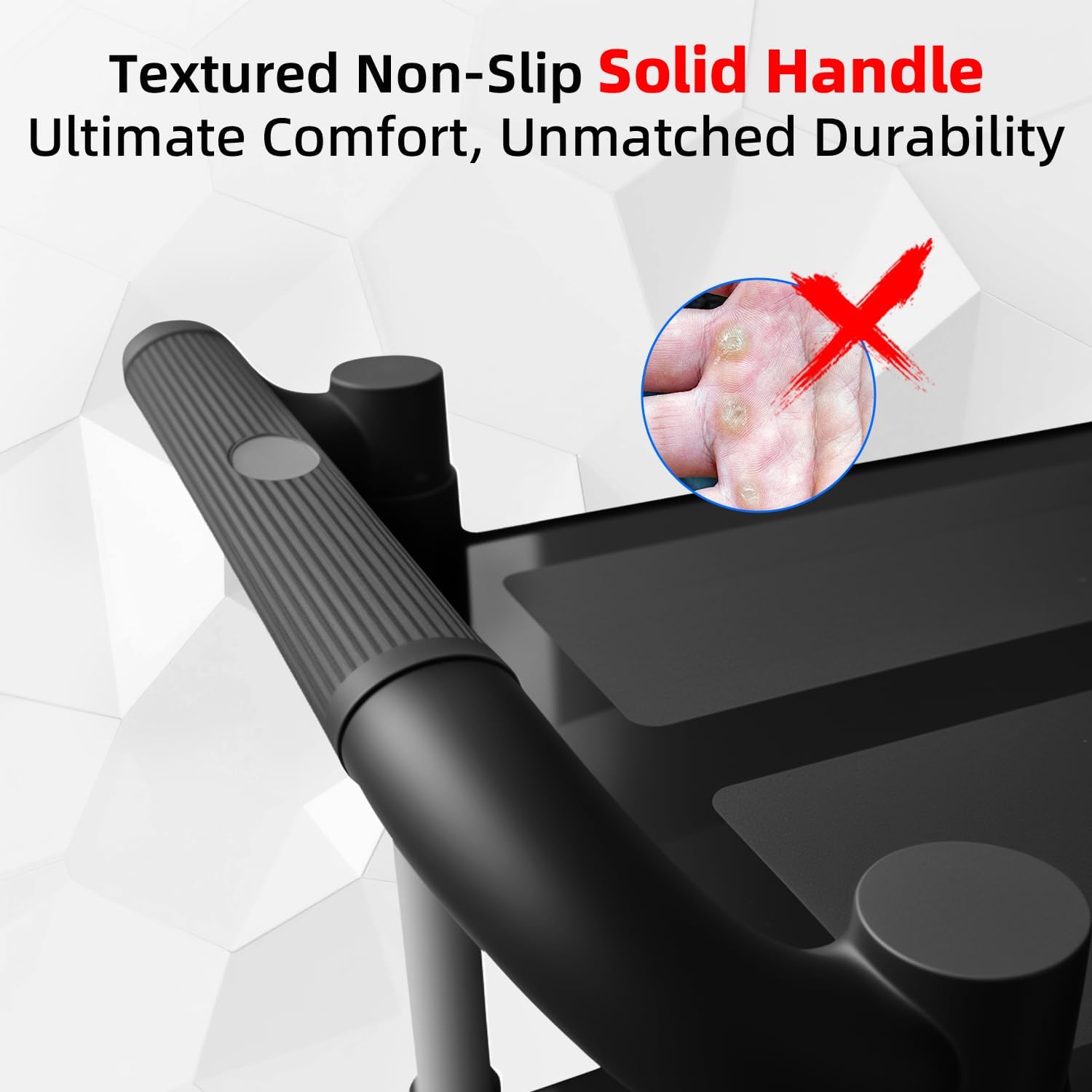 • Reinforced Solid-Core Handles : Dual side handles feature solid-core construction for superior grip comfort and weight-bearing durability. Rounded corners prevent wall/furniture damage. A 0.8" protective rim on tray back and sides secures items.