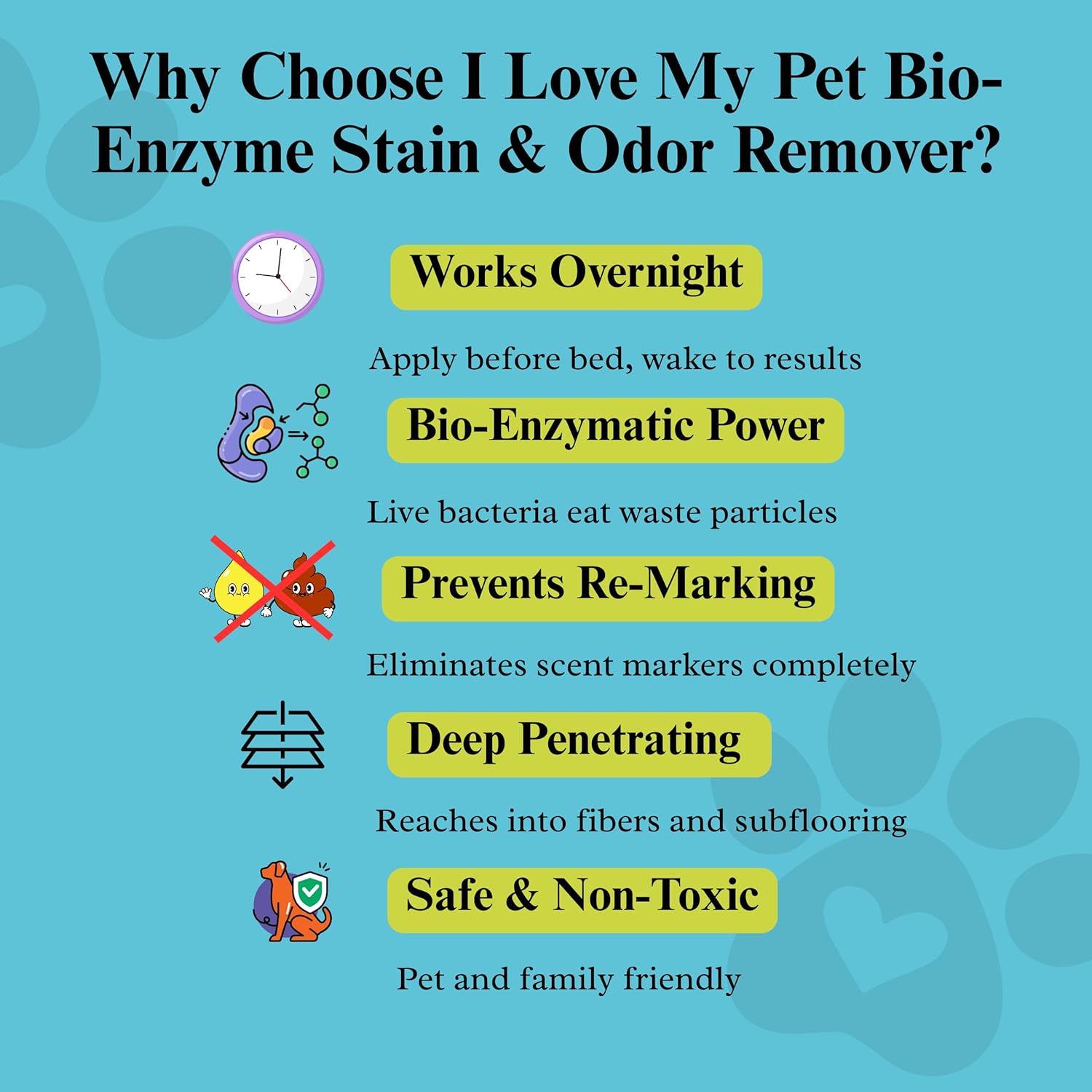 I Love My Pet Bio-Enzyme Stain and Odor Eliminator for Home, Enzyme Cleaner, Pet Carpet Cleaner Spray, Pee, Carpet Stain Remover Spray, 32 oz Fresh Scent